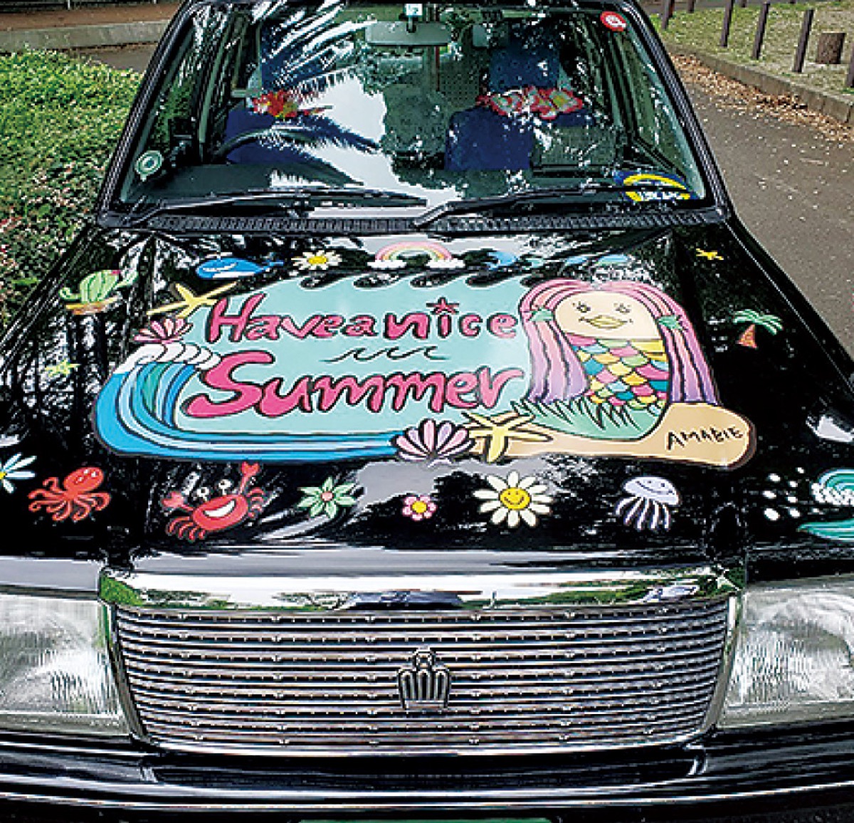 スイカタクシーは、車体の天井部分に丸いスイカをかたどった行灯(あんどん)を取り付け、ボディーにはスイカ、パイナップル、タコ、カニ、クジラ、ハワイアンのダンサーなど夏気分を感じさせるようなデザインステッカーが施されている。今年は新型コロナウイルスの退散を願い、ボンネットに疫病退散の妖怪として江戸時代に描かれた「アマビエ」のイラストをあしらっている。「少しでも早くコロナ以前の生活に戻れるように、願いを込めて運行いたします」と村木祐治専務取締役は力を込める。「スイカタクシー」は1台限定で8月31日まで主に川崎区、幸区内を走行する。