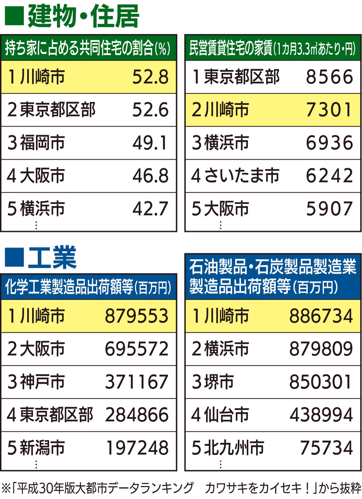 川崎市が、21大都市(政令指定都市と東京都区部)の基礎的な統計資料を比較し、ランキング形式にまとめた冊子「平成30年版大都市データランキング カワサキをカイセキ!」を、このほど発行。人口や土地、事業所、生活など11項目のさまざまなデータが紹介されている。