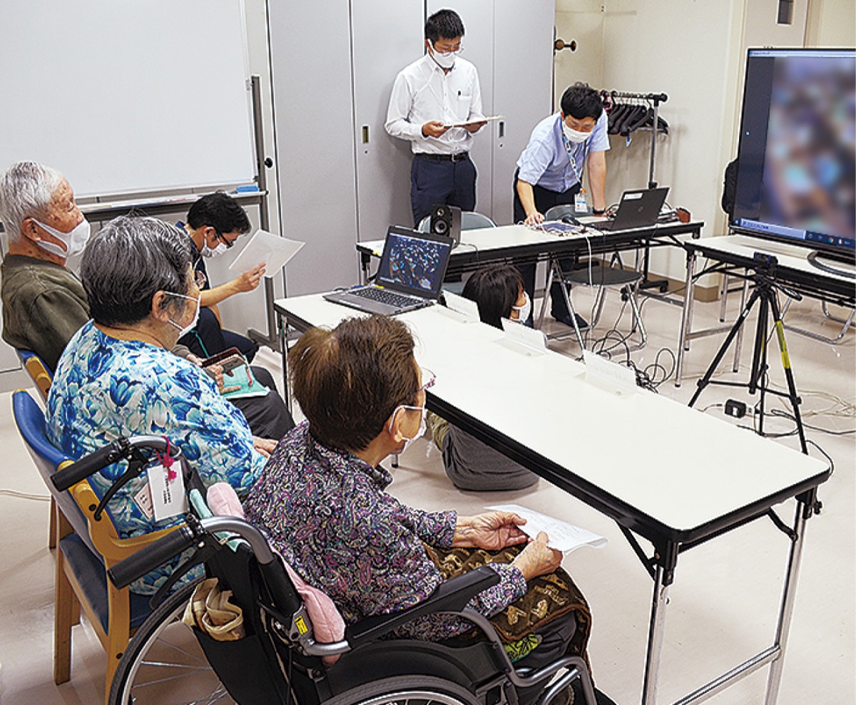 職員らは、高齢者の体の変化や困りごとなどを説明したほか、モニターを通して施設を紹介。児童からの「私たちに何かできることはありますか」という質問に、利用者の一人は「人の声を聞くのが嬉しい。あいさつとかね」と話していた。