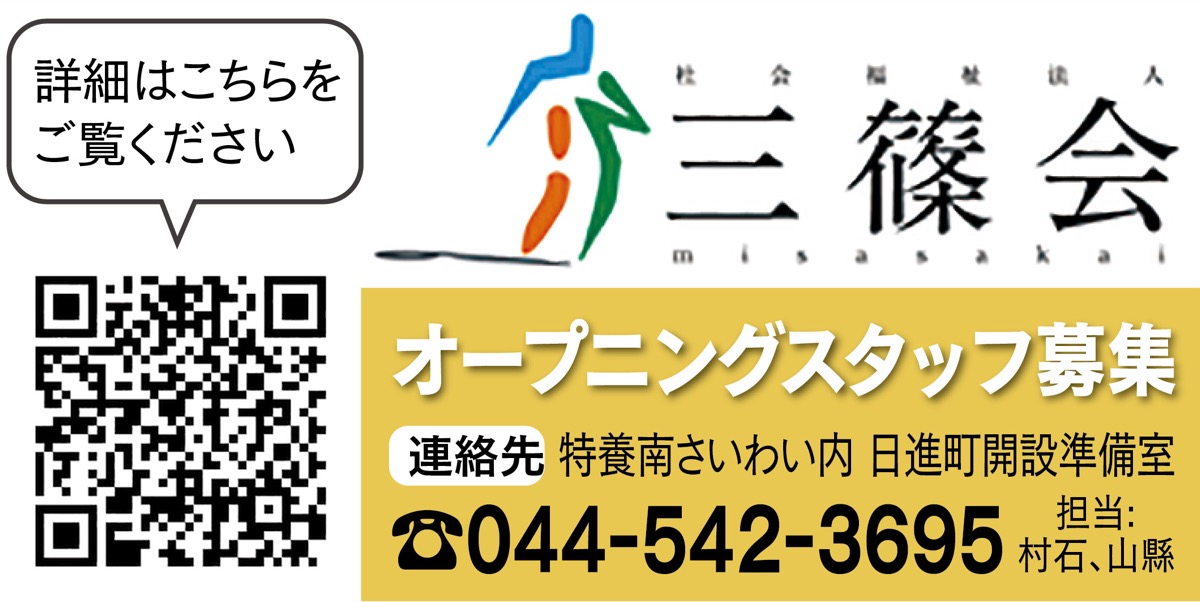 同ホームは社会福祉法人三篠会と川崎市が共同で運営を行う「川崎市複合福祉センターふくふく」内に整備中で、現在、着々と準備が進んでいるという。また、介護職員とケアサポーター(シーツ交換や簡単な家事)のオープニングスタッフを募集している。介護職員は、併設の保育所に子どもを預けることも可能。「一緒にこの施設を作ってくれる仲間を募集しております」と開設準備室長は話す。まずは気軽に問い合わせを。