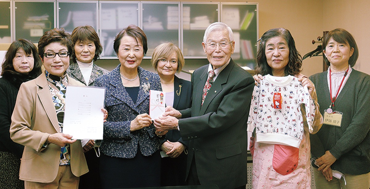 川崎商工会議所女性会(朝山昌子会長)は昨年末、社会福祉活動の一環として社会福祉法人母子育成会(川崎区本町)に、ベビー服やタオル、カレンダーなど400点以上の物資を寄付した。