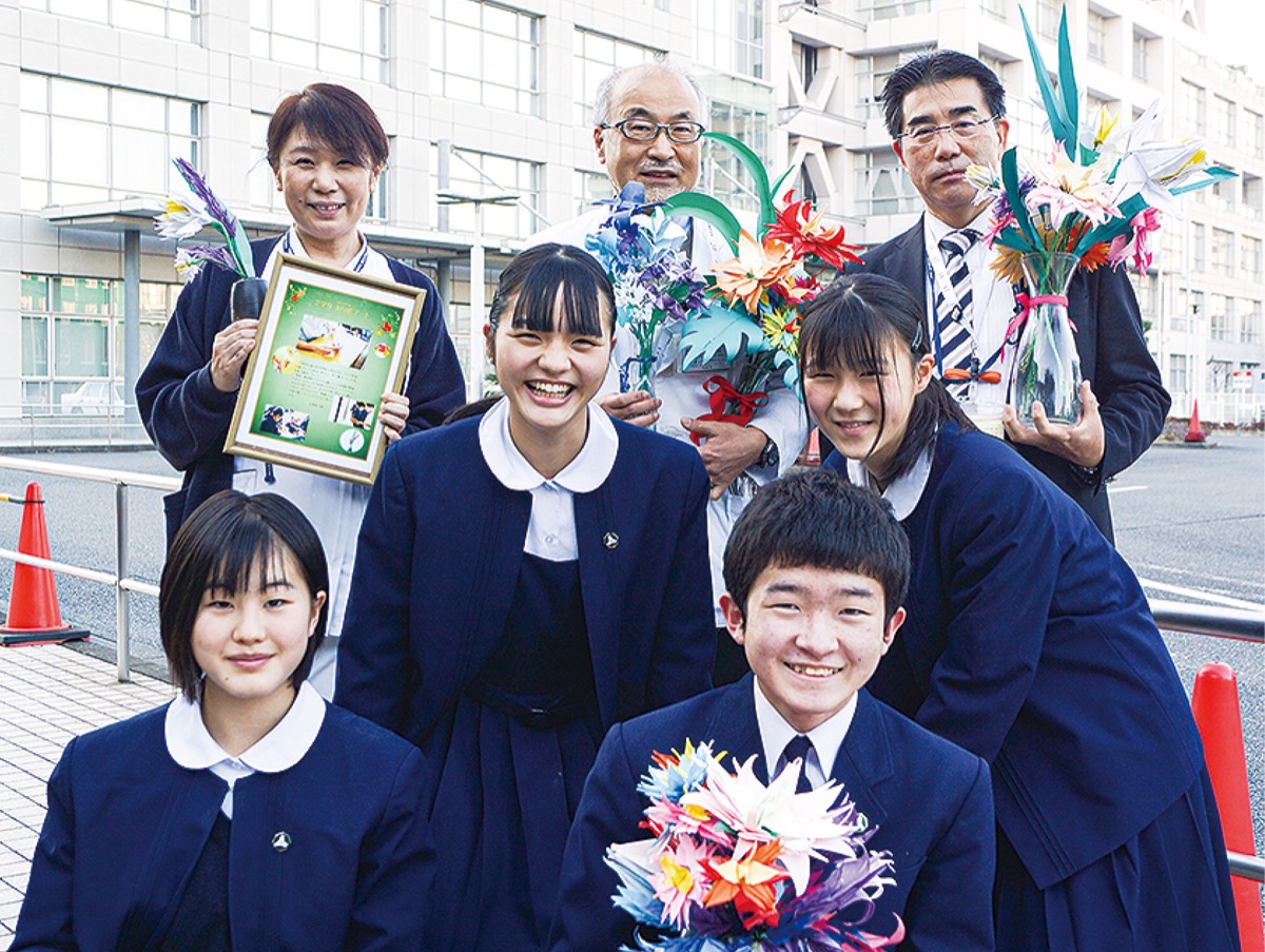 鶴の折り方を知らなかった生徒も多く、生徒間で教えあうことで新しいクラスの交流を深めるきっかけにもなったという。実際に贈るにあたっては折り鶴アートの発案者でもある美術科の森田綾教諭が5種類の花束にリメイクした。