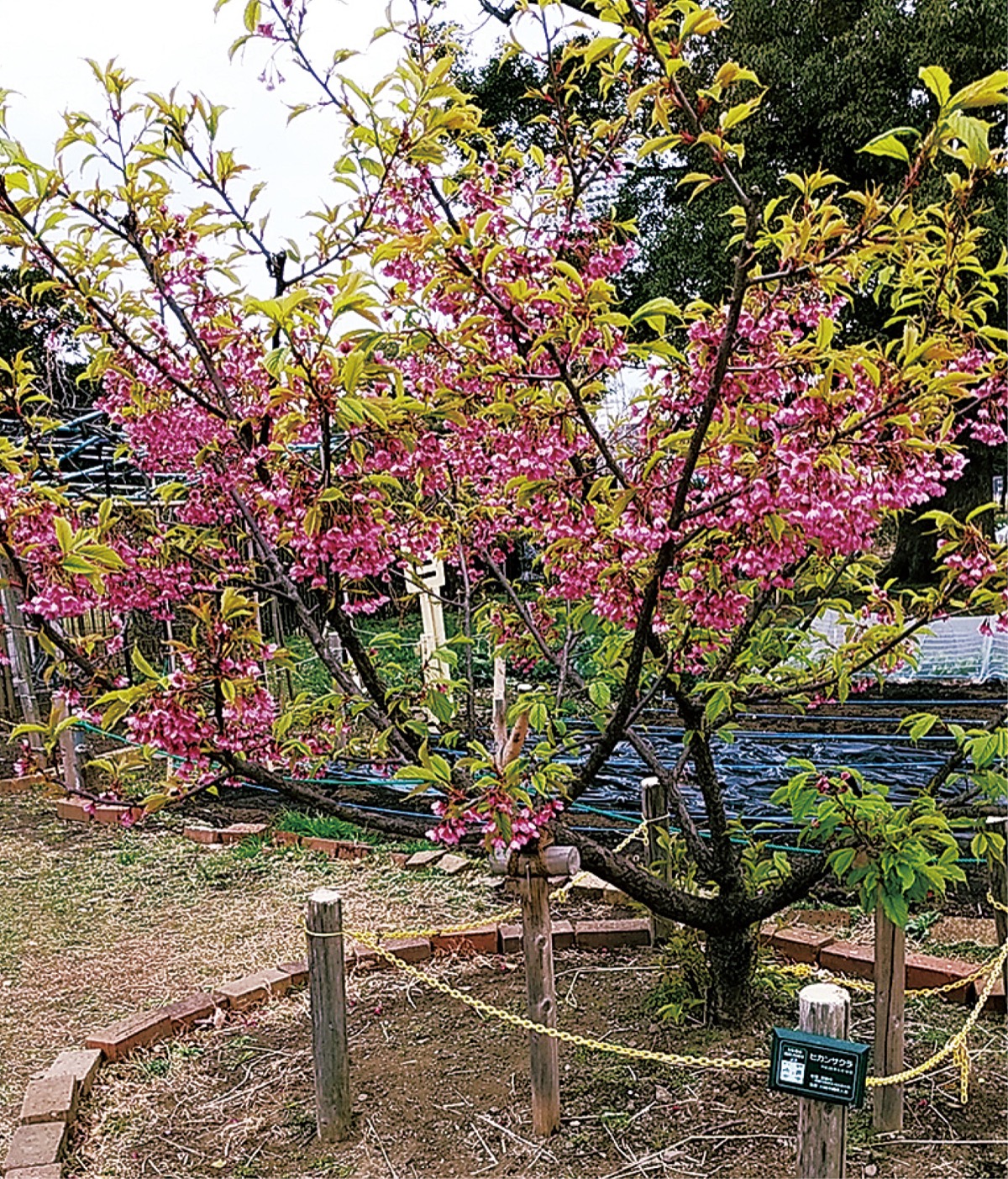 川崎市と那覇市の友好都市締結20周年を記念して2016年に植樹されたヒカンサクラが鮮やかに色づき、3月5日に満開を迎えた。ヒカンサクラは沖縄県の特産。早咲きで濃いピンクの花がうつむきがちに開く。