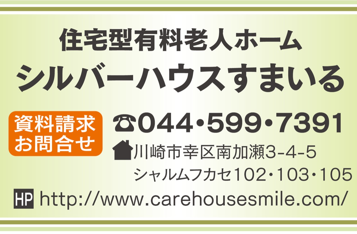 幸区南加瀬の住宅型有料老人ホーム「シルバーハウスすまいる」は定員8人のアットホームな小規模施設。徒歩圏内にスーパー、コンビニエンスストア、飲食店や医療機関もそろう。近くには夢見ヶ崎動物公園もあるなど恵まれた生活環境にある。