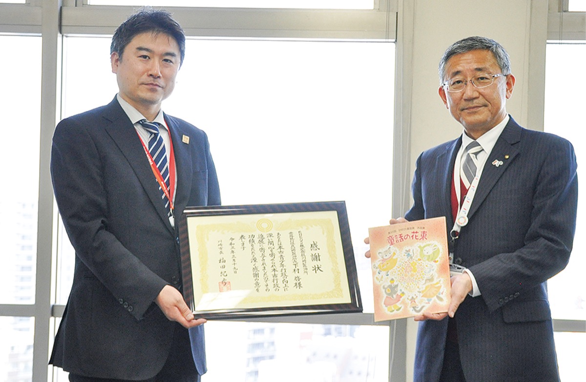 ENEOS株式会社川崎製油所(下村啓所長)は3月19日、 同社が手掛ける童話賞作品集『童話の花束 その51』352冊を市に寄贈した。