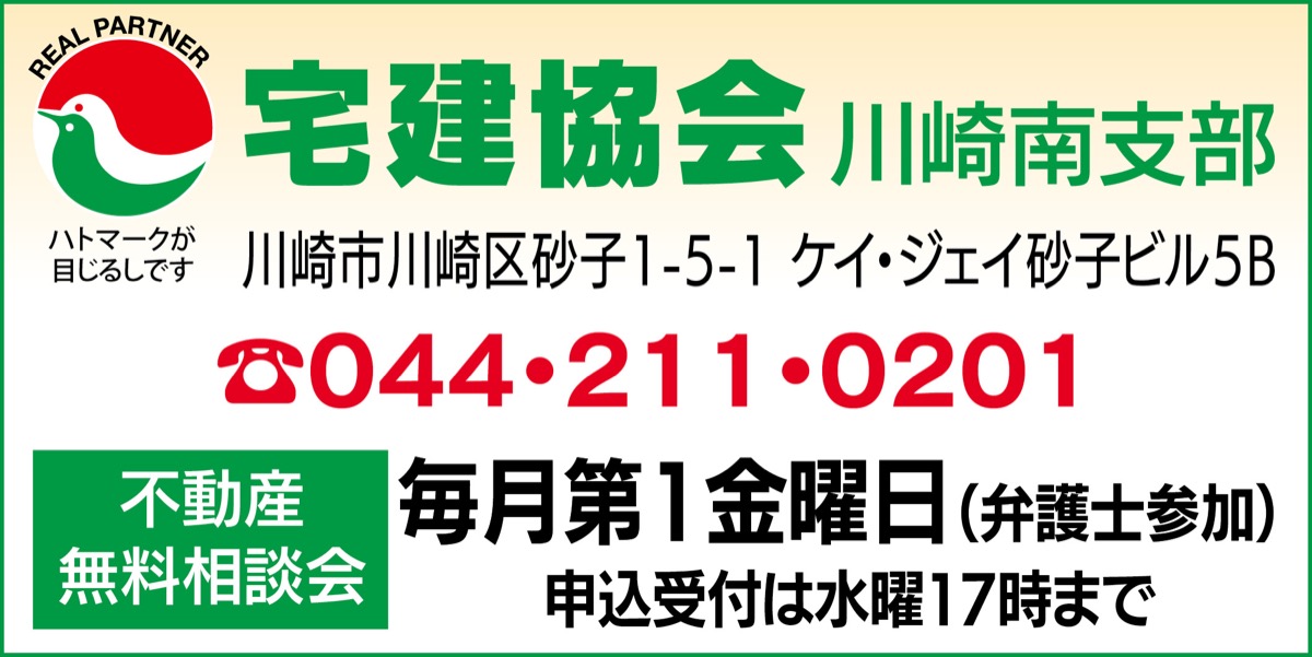 神奈川県宅地建物取引業協会川崎南支部は、住まいに関する問題や空き家に関する事など不動産取引について、毎月第一金曜日に無料での相談会を行っている。午後1時から3時まで(予約制)。