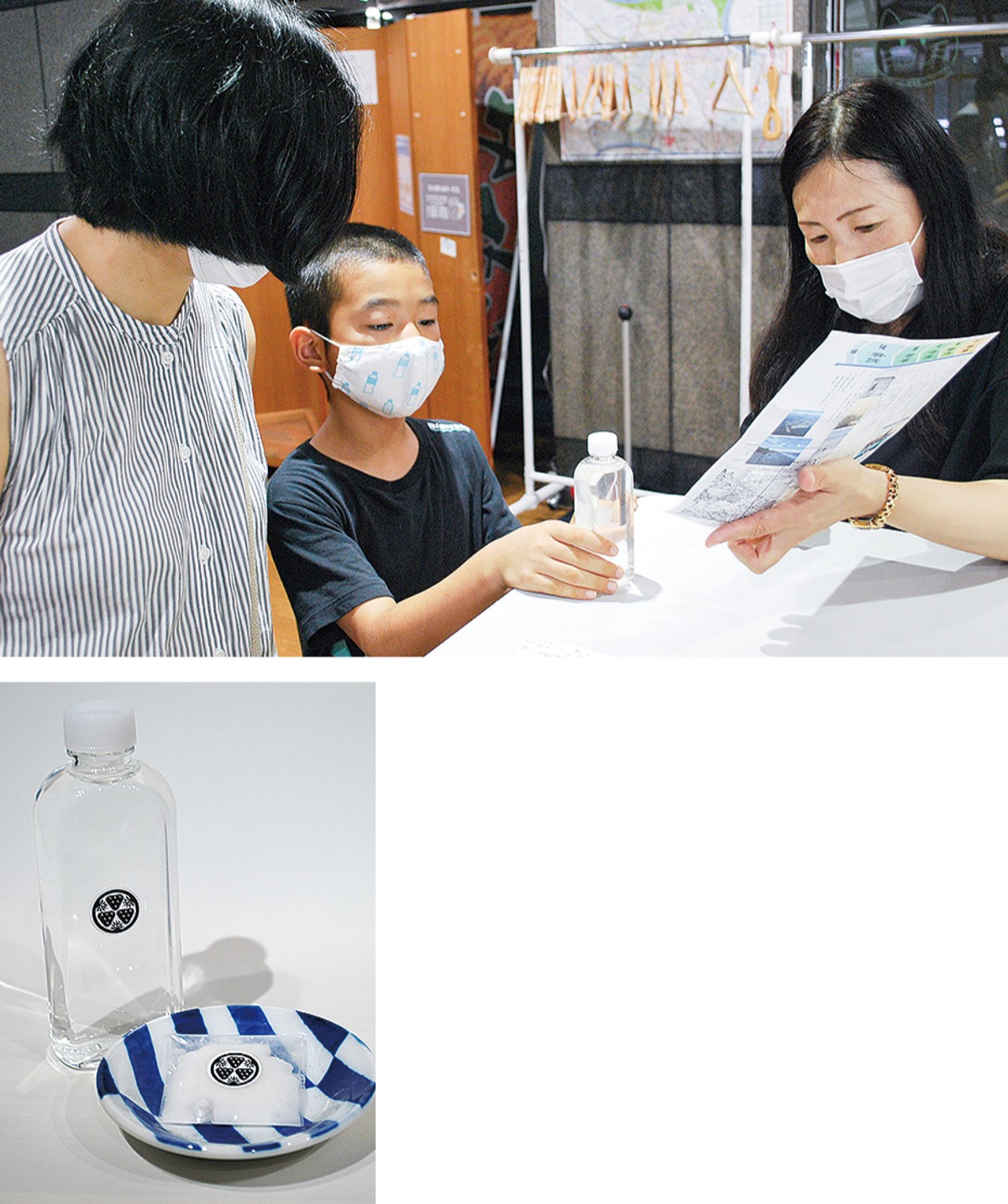 プロジェクトを進めるのは、産業振興会館内のカフェ「まんまmiyu」の田邊奈穂さんと岩篤志さん。東扇島で汲んだ海水をろ過して作った塩の素となる「かん水」を容器に入れてキットを作成。製塩の歴史やプロジェクトを通したSDGsへの取り組み、キットの使用法などをまとめたリーフレットも新たに作り、解説を交えながらキットと共に配布した。田邊さんは「続々とお越しいただいて驚いた。川崎の海や環境に興味を持っている方が多いことが実感できた」と話す。