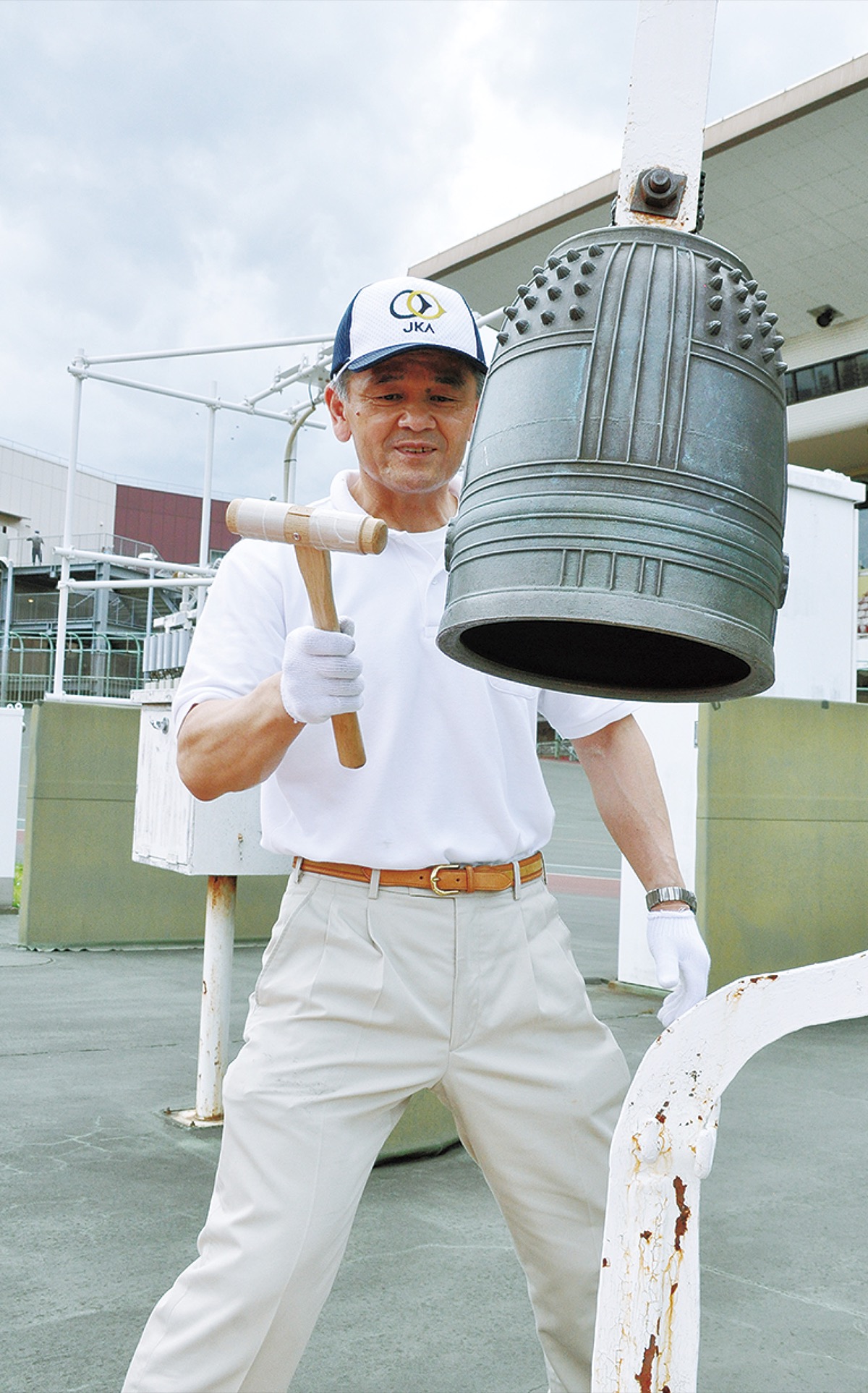 「カン、カン、カン、カン…」。競輪レースで残り1週(半)になると、鳴らされる打鐘(ジャン)。選手たちは鐘の音を合図に、スピードを上げ、レースは佳境に入る。「ここには競輪のエッセンスが詰まっている」と川崎競輪でジャンを鳴らす打鐘員(だしょういん)の宮田信介さん(64)は話す。宮田さんは競輪を統括する公益財団法人JKA職員を定年退職後、嘱託で再び打鐘員として活躍する。8月5日から8日は川崎競輪場では「アーバンナイトカーニバル2021」(GIII)が開催。宮田さんは「レースと合わせて注目していただきたい」とも語る。