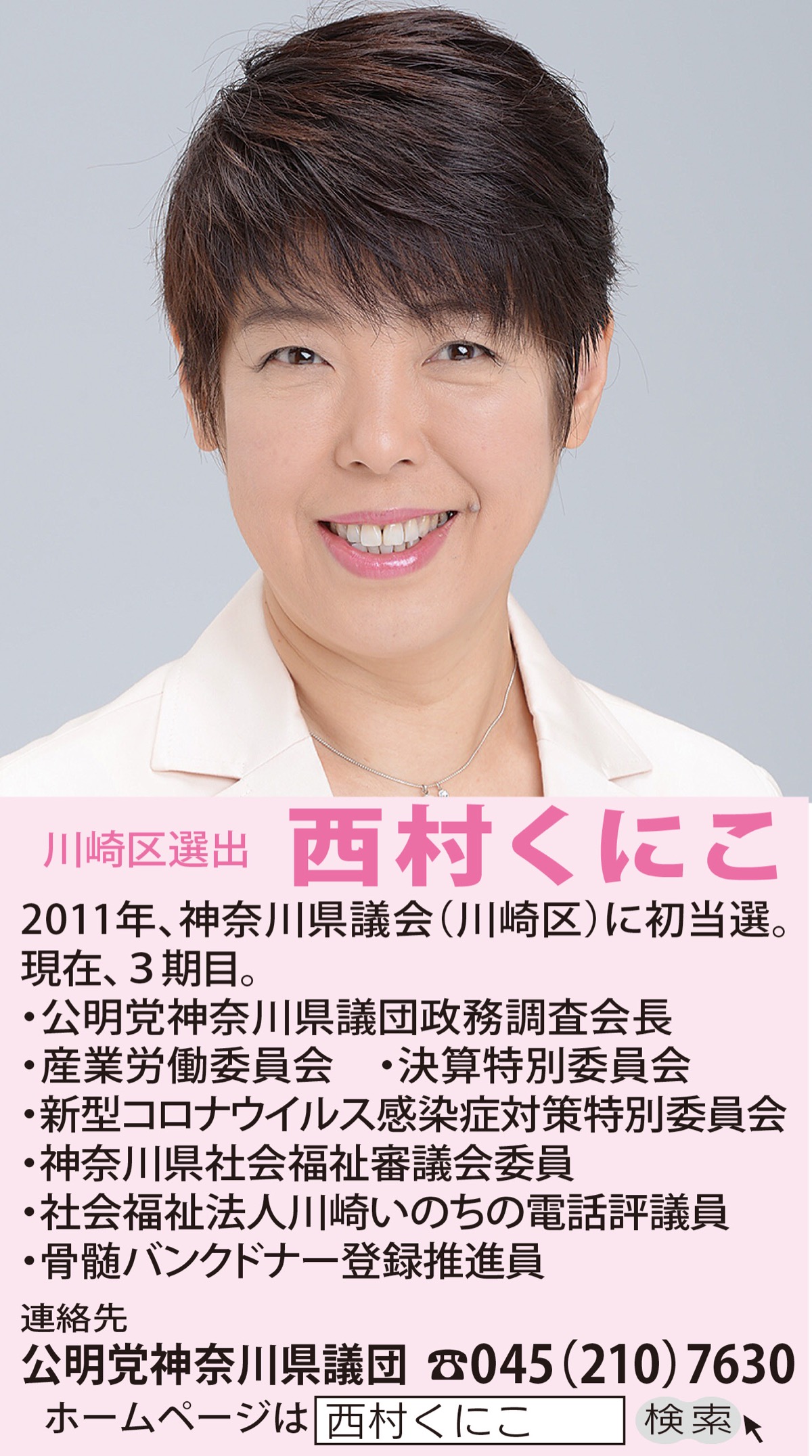 県会議員(川崎区選出)公明党 西村くにこ