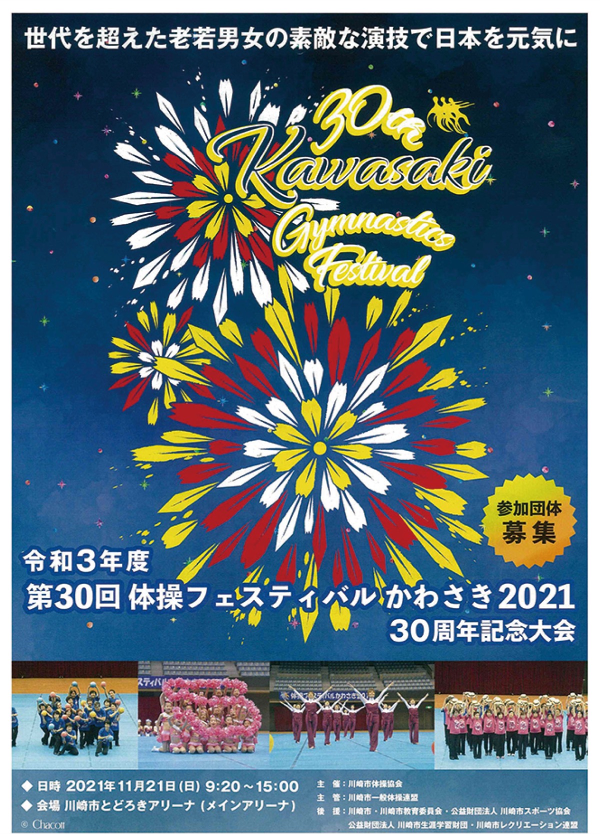 川崎市体操協会は11月21日(日)に川崎市とどろきアリーナ(中原区)で「第30回体操フェスティバルかわさき」を開催する。これにともない、主管する川崎市一般体操連盟は参加団体を募集している。