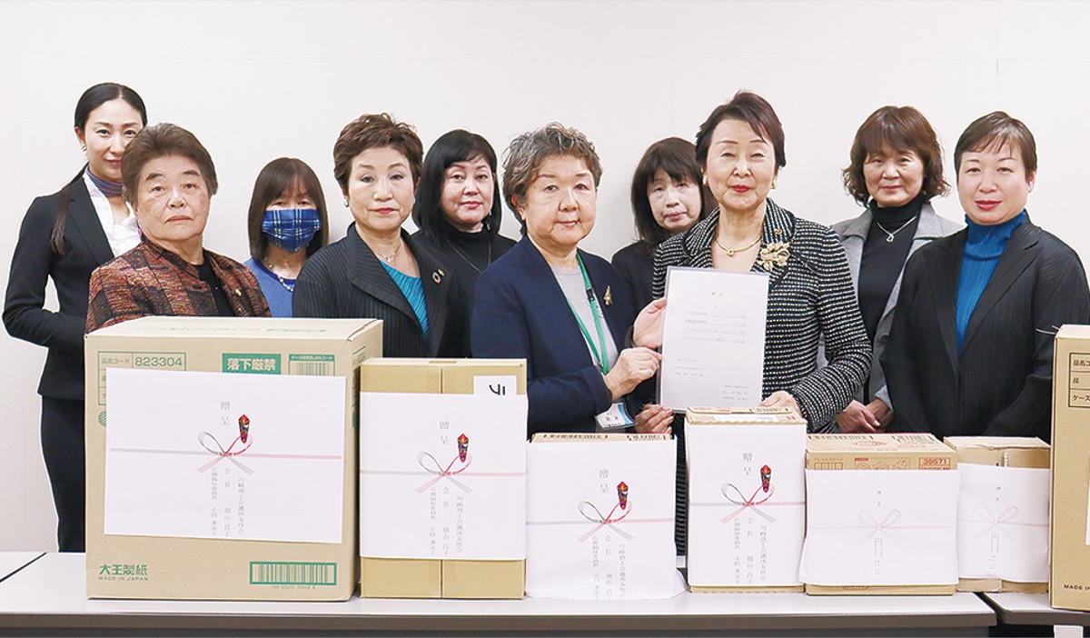 川崎商工会議所女性会(朝山昌子会長)は昨年末、社会福祉活動の一環として社会福祉法人母子育成会(川崎区)と川崎市男女共同参画センター(すくらむ21)に物資を寄付した。