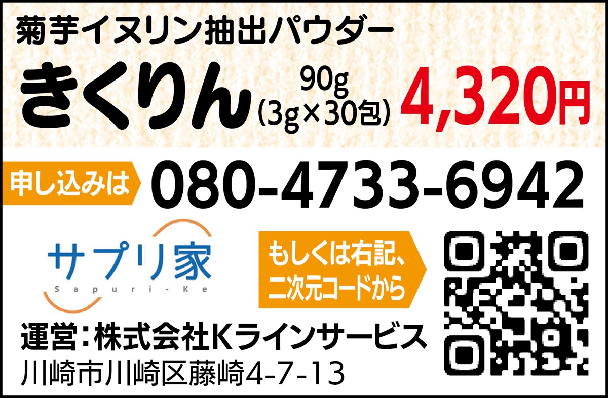 サプリ家の「きくりん」は菊芋からイヌリンだけを抽出し、パウダー化した健康補助食品。1包3グラム中、イヌリン含有量は2・8グラム以上と業界最高水準。お茶やコーヒー、みそ汁やスープに溶かしたり、お米を炊く際に入れるなど、チョイ足しすることで気軽にイヌリンを摂取できる。スティック包装なので、持ち歩いて出先でも手軽に飲め、湿気ることなく使えることも特徴だ。