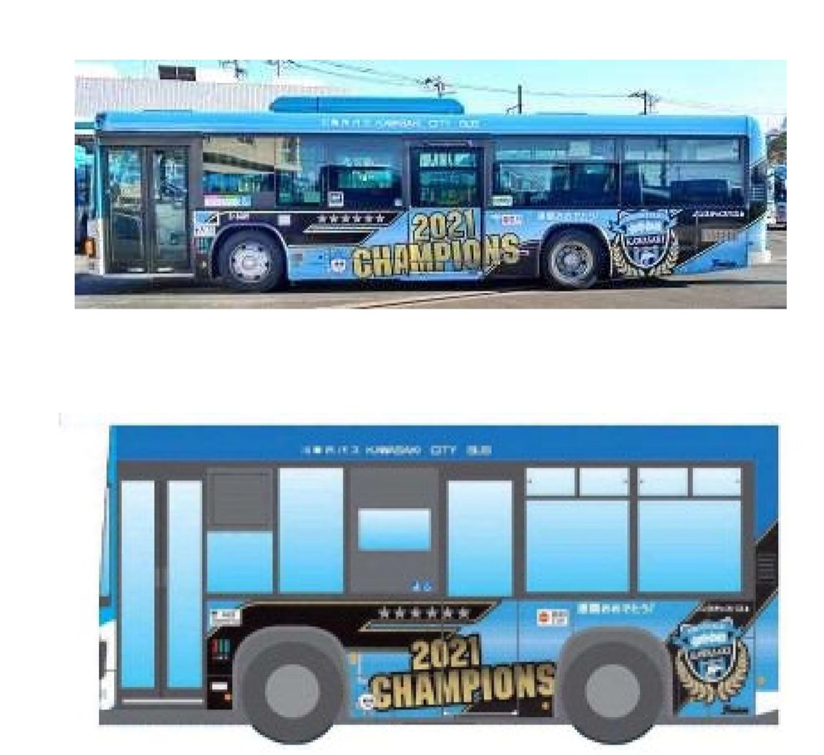 このうち、フロンターレは2021明治安田生命J1リーグ優勝を記念して装飾したバス、ブレイブサンダースは2019年に、クラブ創設70周年プロジェクトの一環で運行したラッピングバスをデザインした。