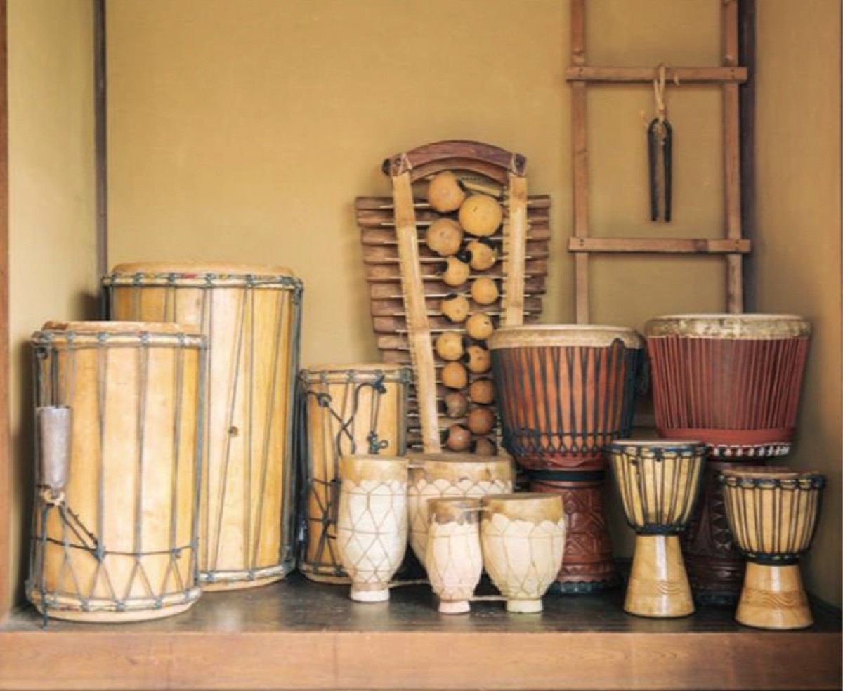 音楽家でデザイナーの高良真剣(たからまはや)さんが講師を務め、アフリカを中心とした民族打楽器を体験しながら文化を学ぶ。高良さんは多摩美術大学在学時に大編成バンド「都会民族楽団panorama」を主宰。多数のバンドや舞台作品に参加し、近年は楽曲制作や即興演奏を主軸に活動する。