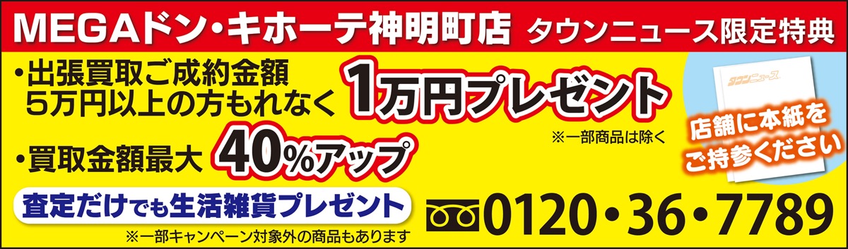 国道1号線沿いのディスカウントストア「MEGAドン・キホーテかわさき店」1階にある買取専門店「おたからや」は出張買取キャンペーンを実施中。「自宅を整理したいけど、外出は不安」「査定してもらいたい品がたくさんある」といった声に対し、電話一本で自宅などを訪問して無料で査定を行っている。