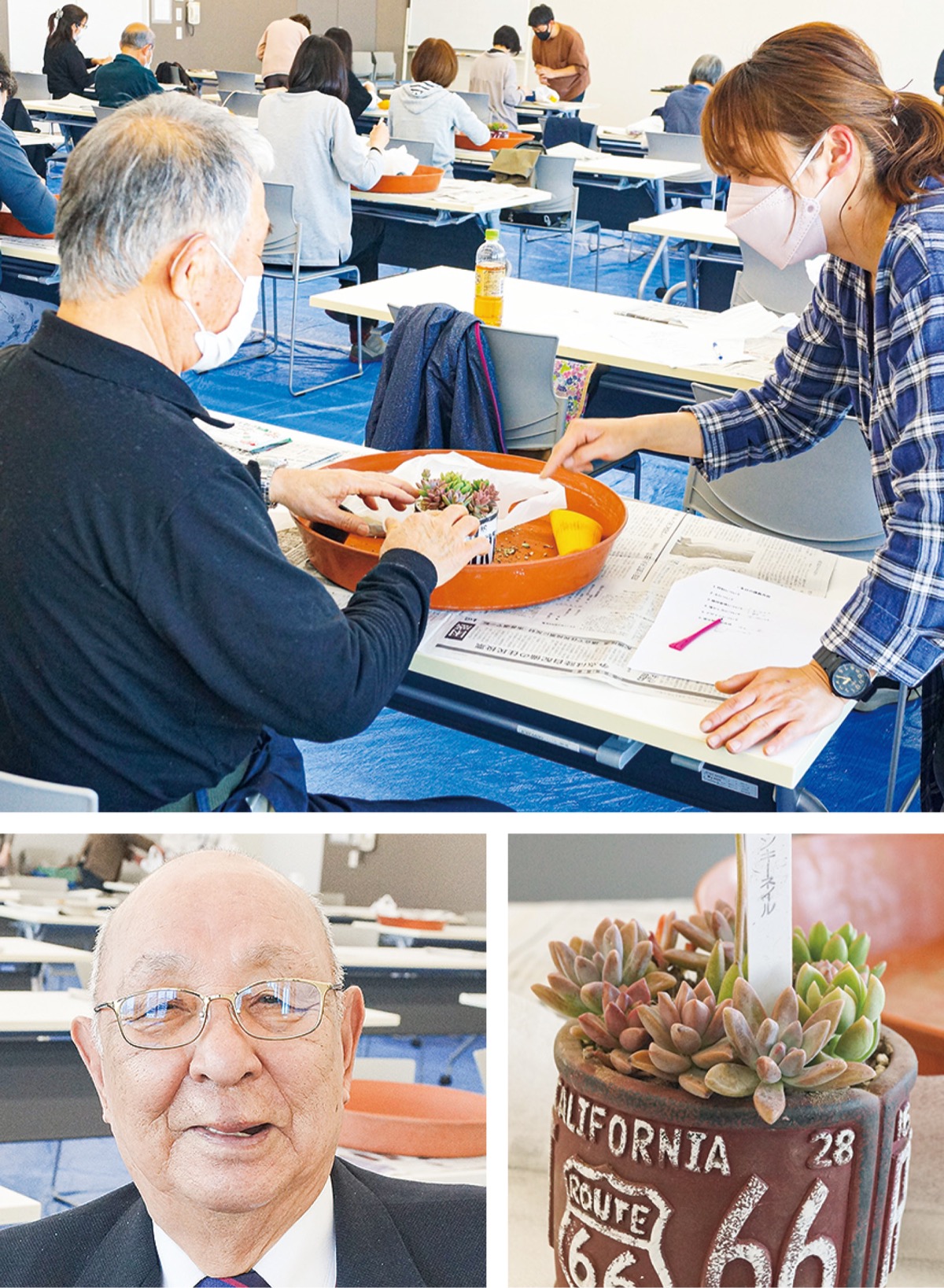 川崎市美化運動実施幸支部(桝本公一郎支部長)と幸区役所は、美しく住みやすいまちづくりを目指す美化運動の一環として、「令和3年度花いっぱい講習会」を3月16日、区役所4階会議室で実施した。事前応募で集まった25人が参加。造園や園芸販売を行う会社が講師となり、多肉植物の寄せ植えを体験した。普段は家のベランダでプランターを使って花を植えているという岡本三男さん(74/塚越在住)は「講習会の参加は3回目。体験の形は初めてだったので楽しい」と企画を満喫していた。