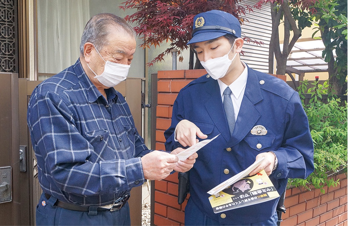 幸署は巡回連絡とともにコンビニエンスストアなどに防犯指導も行う。また注意喚起のチラシを新聞折り込みで1万4千枚配布。今後、防犯機能付き電話機の貸し出しにも力を入れていく。