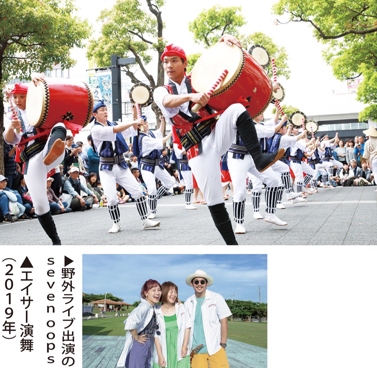 沖縄の伝統的な踊り、エイサーは、イベントのハイライト。3日から7日(6日除く)、川崎ルフロン前で6組の団体が日替わりで午後0時30分からと午後3時30分から、ダイナミックな演舞を披露する。
