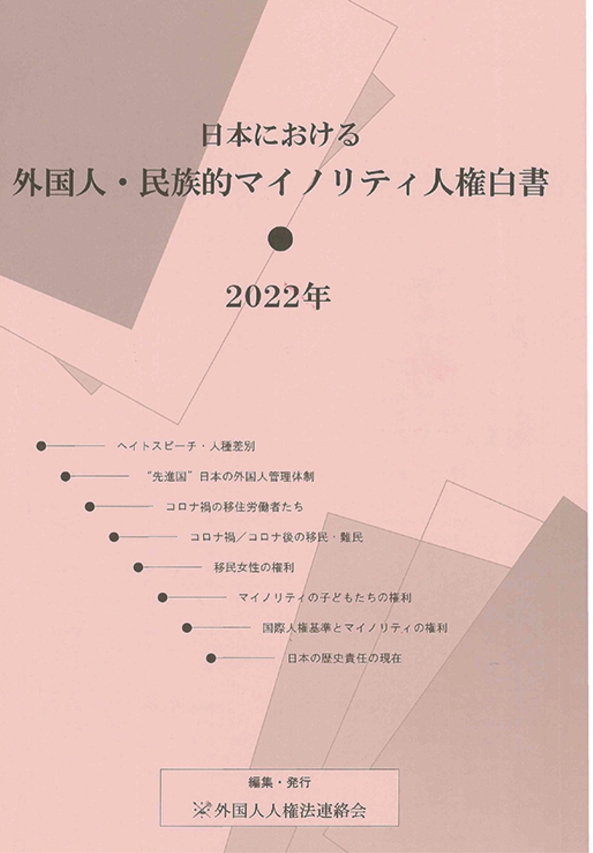 外国人・民族的マイノリティの人権に関する最新の出来事や課題を特集した『日本における外国人・民族的マイノリティ人権白書』の2022年版がこのほど、発行された。人権問題に取り組む研究者や弁護士などでつくる「外国人人権法連絡会」(田中宏一橋大学名誉教授、丹羽雅雄弁護士共同代表)が作成した。