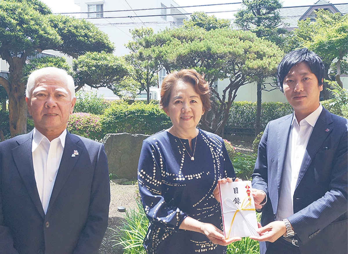 不動産賃貸管理などを営む(株)石川商事(本店/川崎区東門前)は6月13日、施設運営に役立ててもらおうと、特別養護老人ホーム「ゆとりあ」(川崎区殿町/寺尾富美代理事長)に現金50万円を寄付した。