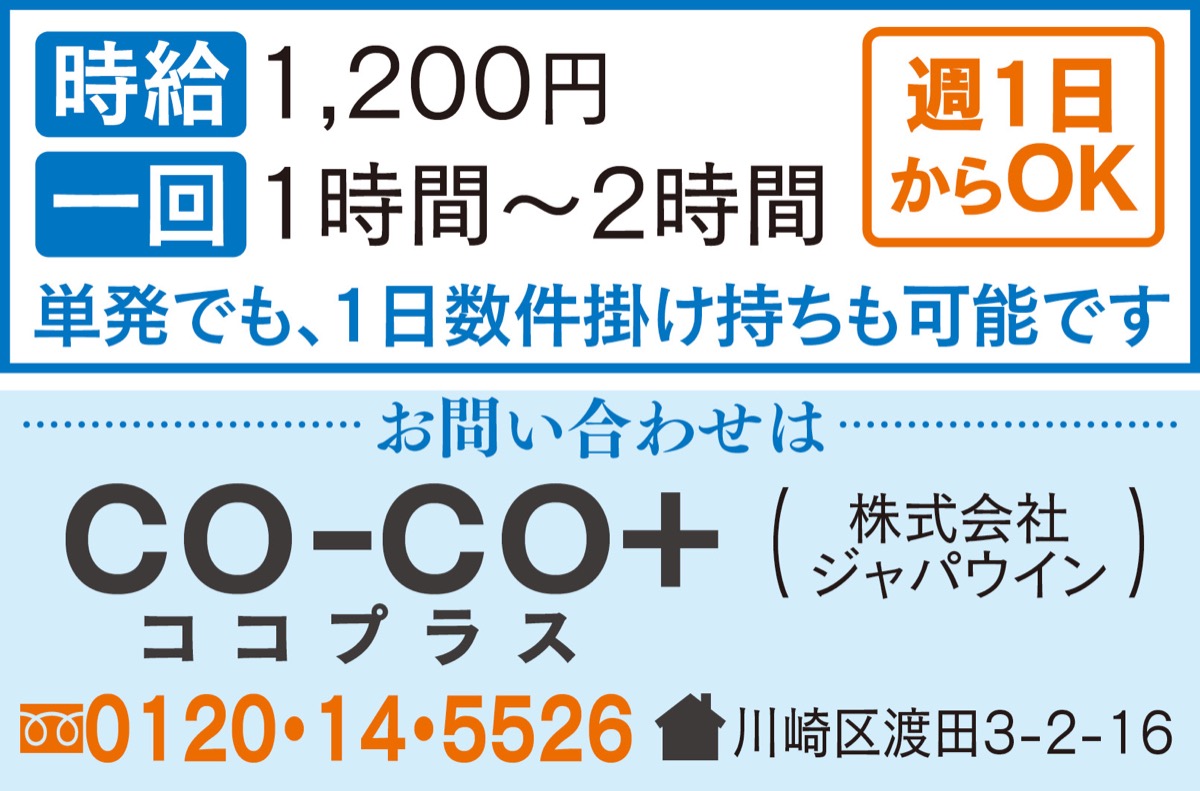 掃除や料理、買い物といった家事全般の支援をする介護事業者ジャパウインの新サービス、ココプラスが、「気軽に頼めて利用しやすい」と早くも評判だという。
