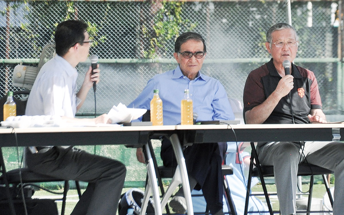 トークショーには、最初に川崎球場を本拠地にした高橋ユニオンズでプレーし、長年『プロ野球ニュース』のキャスターを務めた佐々木信也さんと、法政二高出身で日本人初のメジャーリーガーの村上雅則さんが出演した。