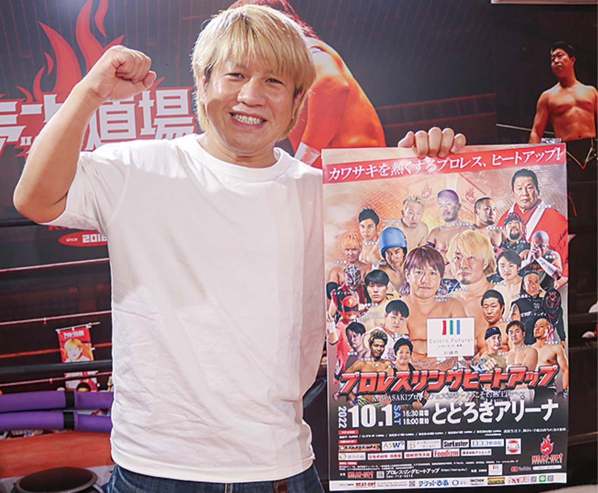 「KAWASAKIプロレスフェス〜ようこそ灼熱王国へ」と題した大会。宮前区在住の中学生レスラー・佐藤大地選手(14)らが、レジェンド・藤波辰爾選手(68)らと対戦する6人タッグマッチなど、全6試合を行う。