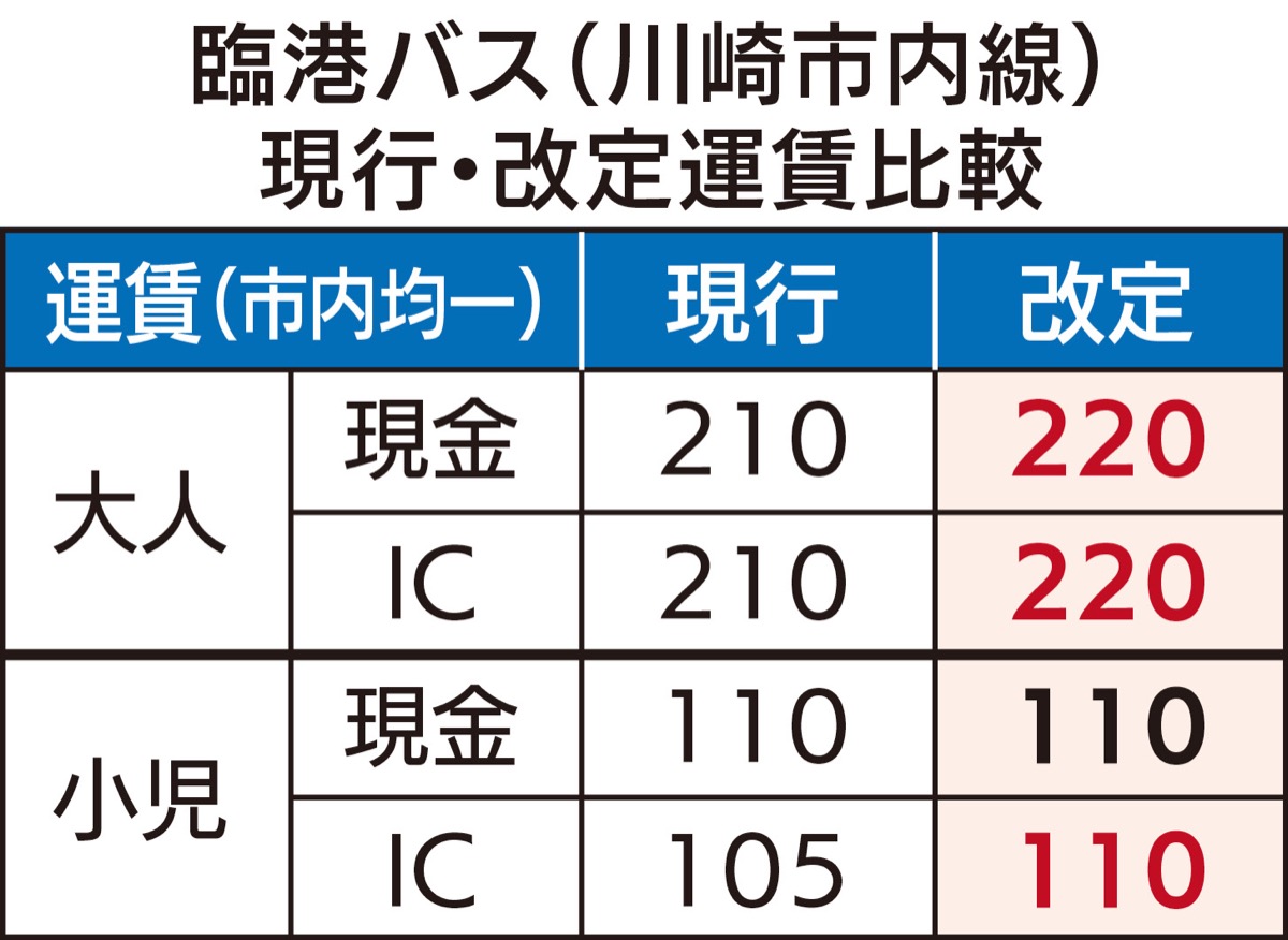 川崎鶴見臨港バス(川崎区中瀬/平位武社長)は9月13日、川崎市内を走るバスの運賃を2023年3月から値上げする方針を発表した。同日、国土交通大臣あてに上限運賃変更認可申請を行った。