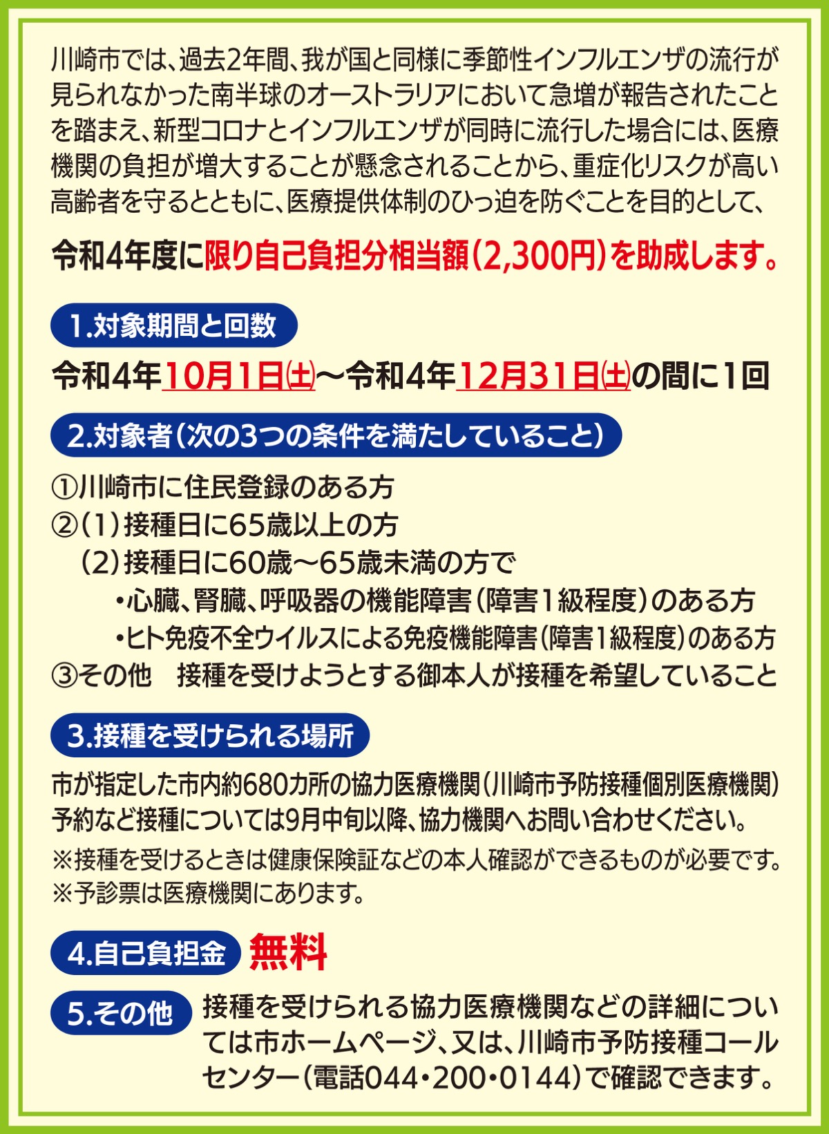新型コロナウイルス感染症との同時流行が懸念されますので、早めに接種の検討をお願いします。詳しくは、表をご確認ください。