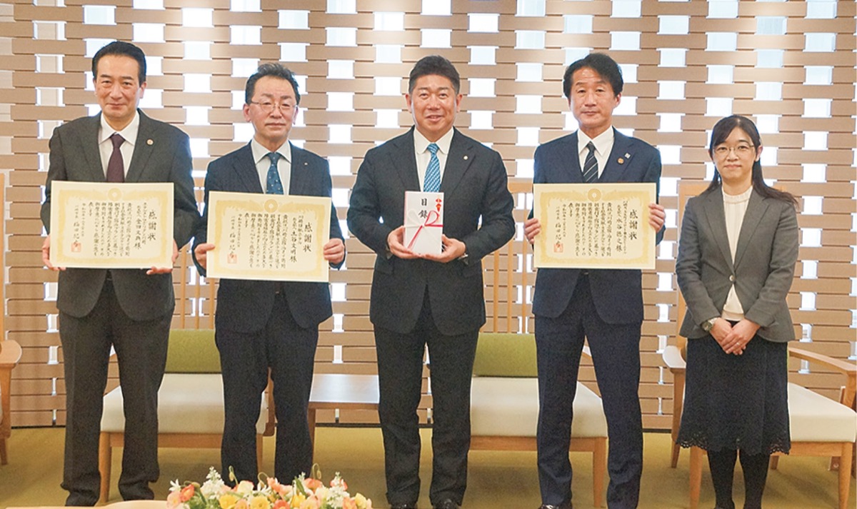 寄付したのは川崎日航ホテル(土谷文明総支配人)、ホテルメトロポリタン川崎(金田文典総支配人)、川崎キングスカイフロント東急REIホテル/水谷徳之前総支配人、岡部久子新総支配人)。3ホテルには福田紀彦川崎市長から感謝状が贈られた。