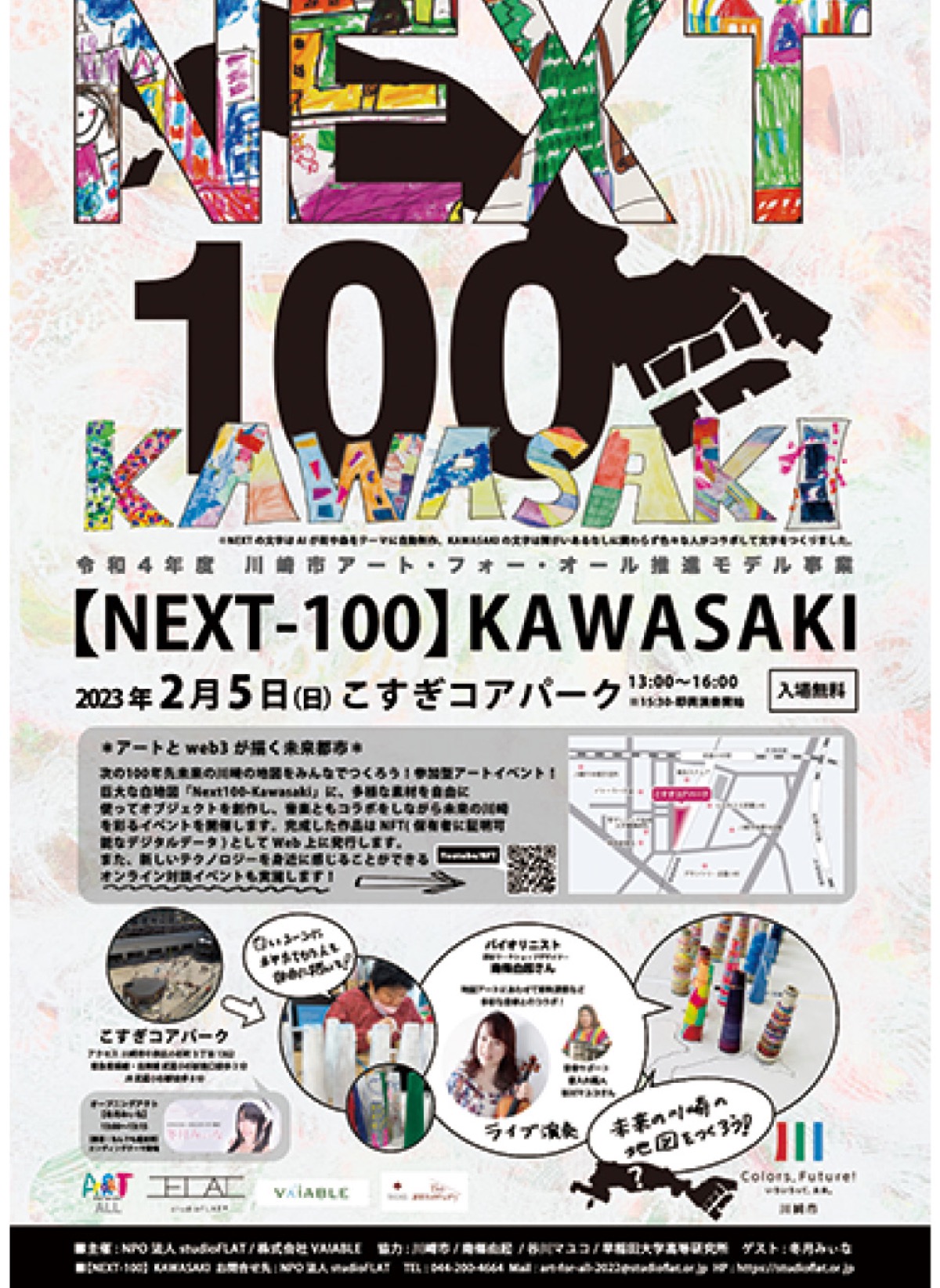 武蔵小杉駅近くのこすぎコアパーク(中原区小杉町)で2月5日、「【NEXT―100】KAWASAKI」と銘打った、参加型アートイベントが開催される。主催はNPO法人スタジオフラット、株式会社バイアブル。
