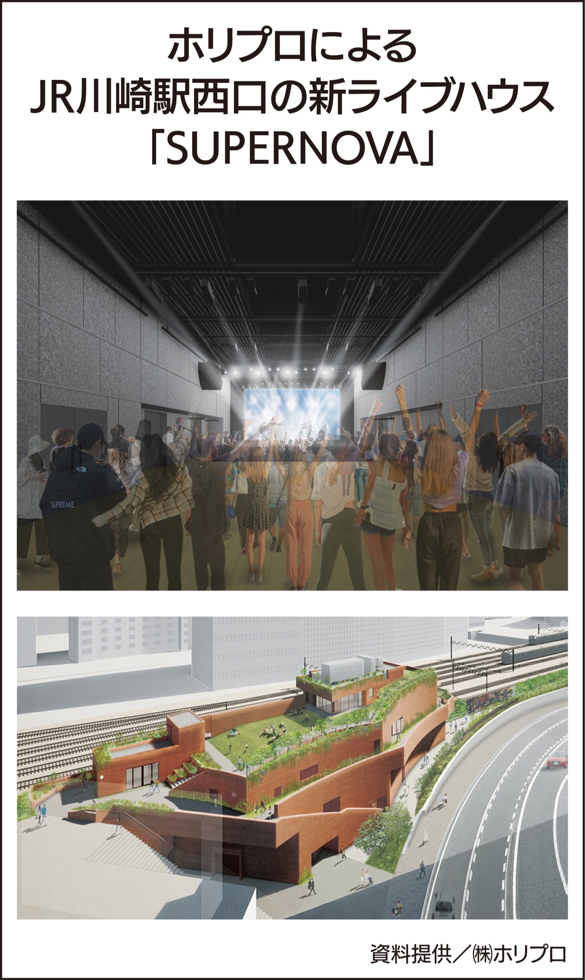 JR川崎駅西口には、JR東日本運営の川崎デルタが一昨年オープン。本年10月15日、幸区の川崎デルタと南武線に隣接するエリアに(株)ホリプロ初のエンターテイメントホールで、新しい才能の開花との願いを込めた「SUPERNOVA川崎(スペルノーヴァ)」が誕生します。主に音楽ライブハウスとなる大ホールをはじめ、小ホール、多目的スペースを備え、芝生が敷かれた屋上広場は誰もが過ごせる、そして軽食なども楽しめる空間に。防災時を想定し防災備蓄倉庫も備え、避難所としても利用可能となる、地域との連携も目指した魅力溢れる施設です。