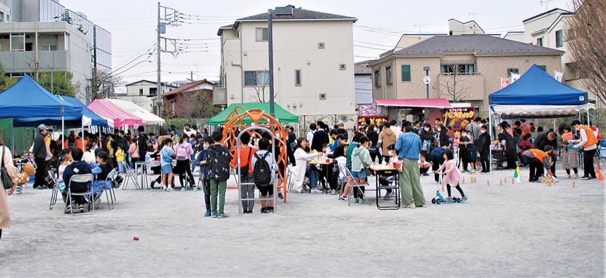 今年度は、大型マンションの塚越ミレナリータワーズ自治会と連携して3月12日に隣接する塚越こかげ公園でイベントを実施。会場には、市内産の朝採れ新鮮野菜やフランクフルト、餃子、駄菓子等の販売テントが立ち並び、同マンションの住民を中心に多くの人で賑わった。販売テントの運営は、自治会や子ども会、老人会、民生委員、バイク同好会等の各種団体が担当。来場者と言葉を交わして交流を図った。また、幸区が自転車交通事故多発地域に指定されていることから、自転車シミュレーターやVRを活用した交通安全啓発も区役所職員により行われた。幸スポーツセンター職員によるパラスポーツのモルック体験や、市民活動団体の協力によるボードゲーム等、来場者同士で交流ができる仕組みを複数用意し、人と人とのつながりを作るきっかけとなるイベントとなった。参加者からは、「普段は、何階のどの部屋に住んでいる人なのか分からなかった人とも話すことができてよかった」「コロナ禍でイベントが開催できなかった中、住民同士、ご近所同士で交流できてよかった」「運営している方たちが楽しそうに見えた。自分も地域活動に携わってみたいと思った」といった意見が寄せられた。