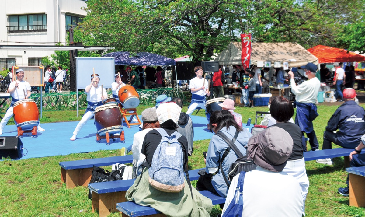 川崎区田島地区の春の一大フェス「第25回おおひん地区春の祭」(柴田和幸実行委員長)が4月16日、桜川公園(川崎区桜本)で開かれた。3年ぶりの開催を待ちわびていた地域住民らがフリーマーケットや模擬店で買い物や食事を楽しんでいいた。