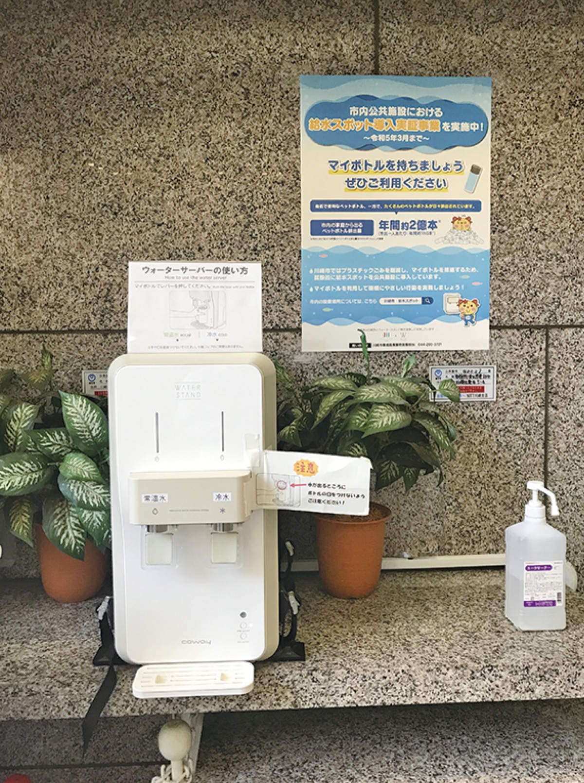 プラスチックごみによる海洋汚染が国際的な問題となる中、市は2020年に「川崎市プラスチック資源循環への対応方針」を策定。方針に基づく取り組みの一つとして、ペットボトルの使用を減らし、マイボトルの利用を推進することを目的に、21年から給水スポットを試験導入した。