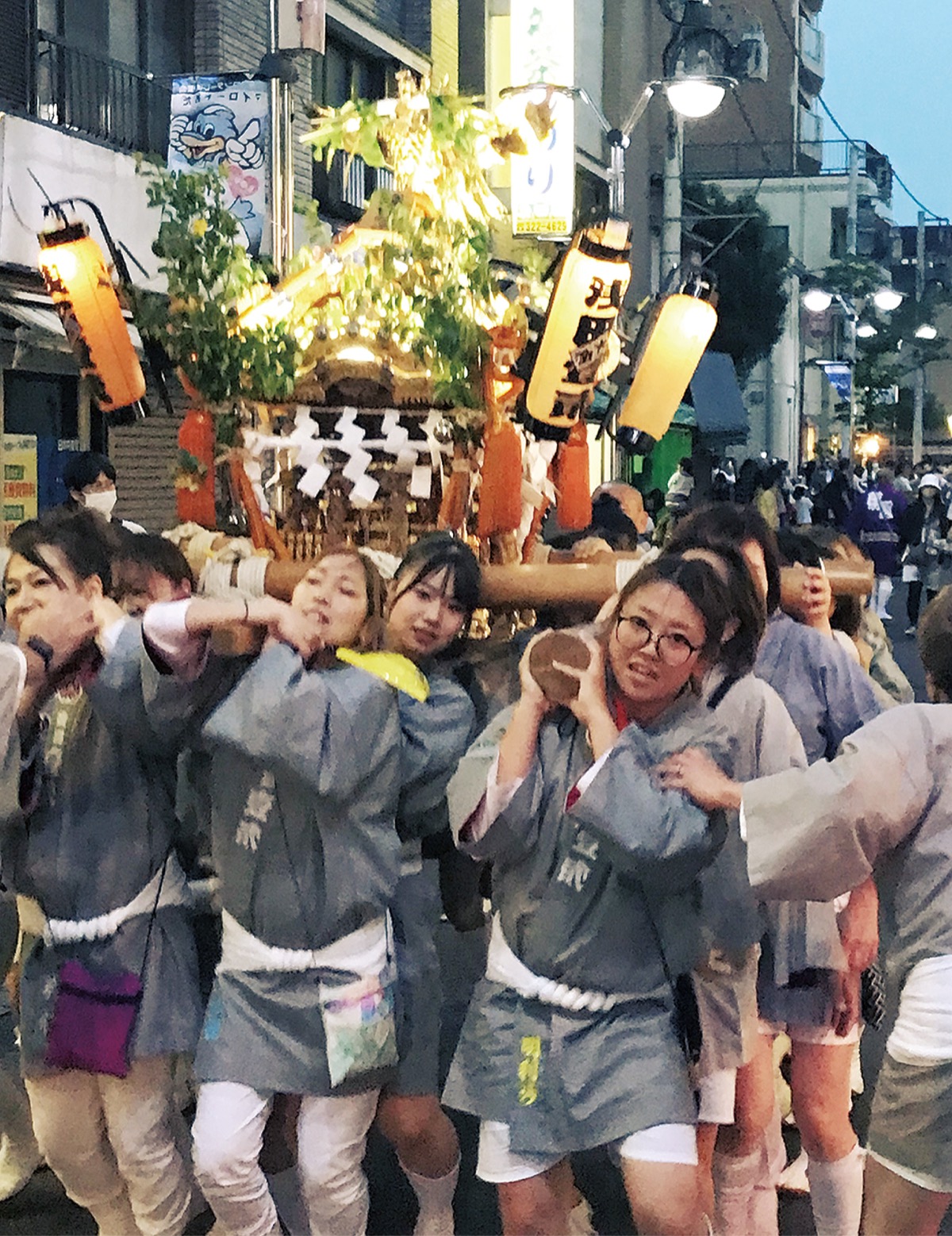 連合渡御の出発点となった浅田小学校には、小田4丁目、小田五六、浅田1・2丁目、小田中央、小田1丁目、京町3丁目の神輿が集結。女性だけで担がれる「女神輿」も登場し、計7基の神輿がマイロード小田商店街から小田小学校まで練り歩いた。沿道には大勢の人が詰めかけ、神輿の動きに合わせて手拍子を送った。