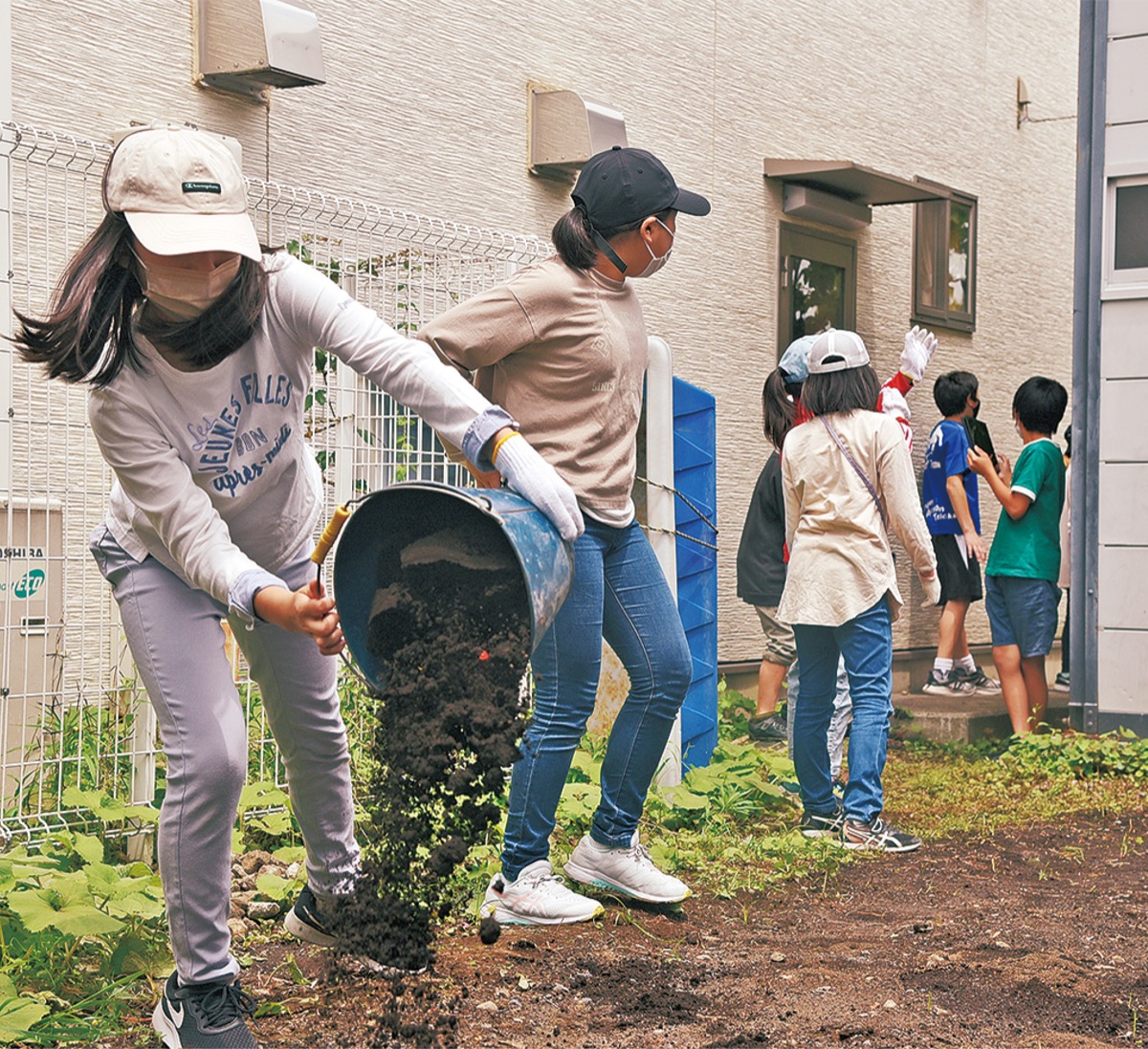 参加した伊藤美冬さん「土が重くて大変だったけど、みんなで協力して楽しかった」。田中心陽さんは「畑らしくなり、これからが楽しみ」と話していた。