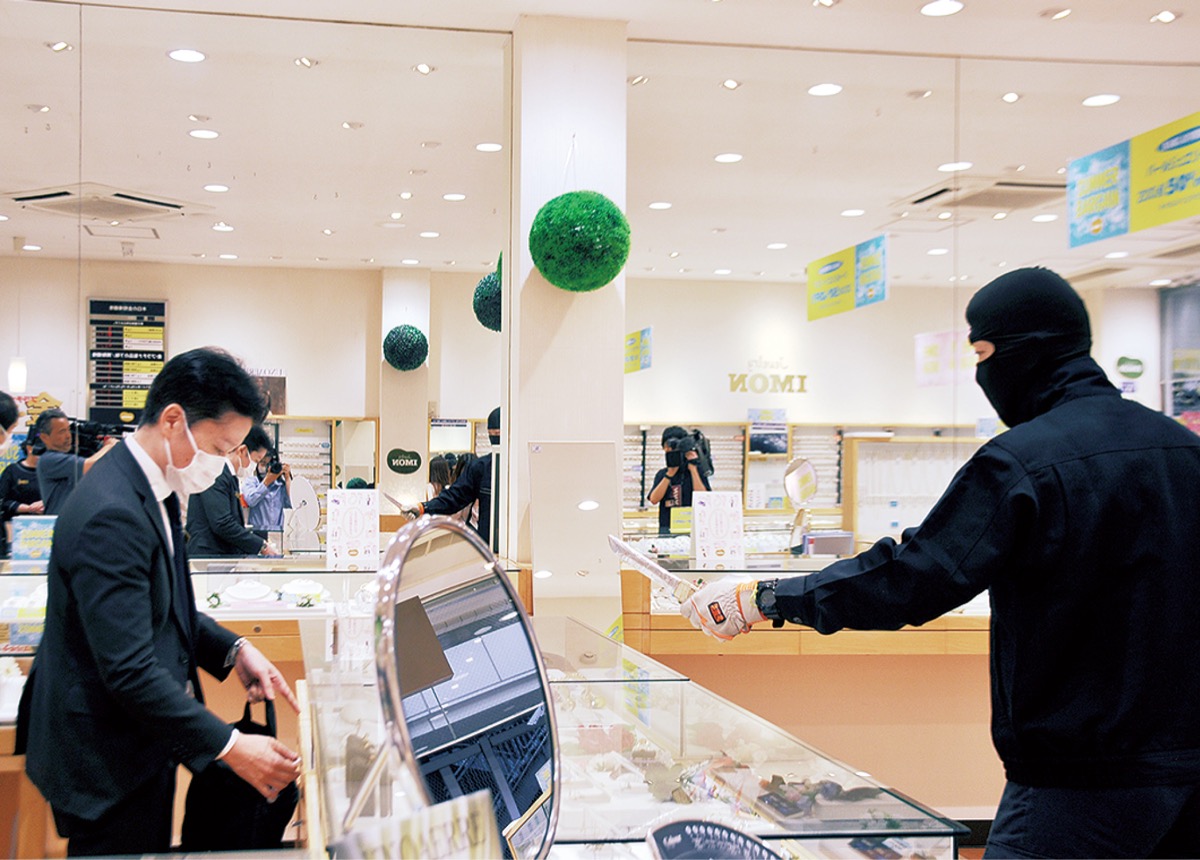 同署は、管轄内の宝飾店40店舗に防犯対策のポイントを記載した注意喚起のチラシを配るなどの対策を実施。要請があればその都度訓練を行っていくとしている。