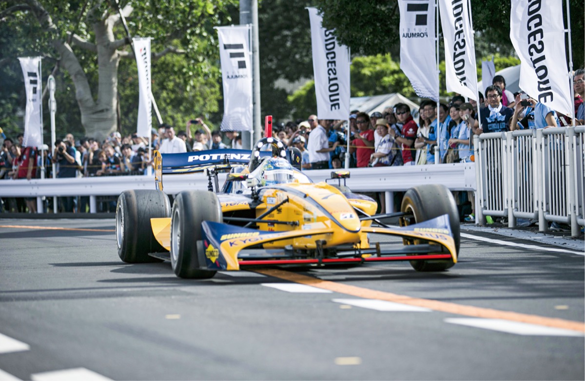 この日は年に一度の市制記念試合で様々なイベントを開催。中でも、アジア最高峰のモータースポーツ「スーパーフォーミュラ」との9年ぶりのコラボは目玉。試合前には、スタジアム前園内道路での走行とタイヤ交換パフォーマンスを披露。子どもも楽しめるEVカート体験コーナーやEVカーシミュレーター体験など、乗り物を身近に感じられるアトラクションも目白押し。