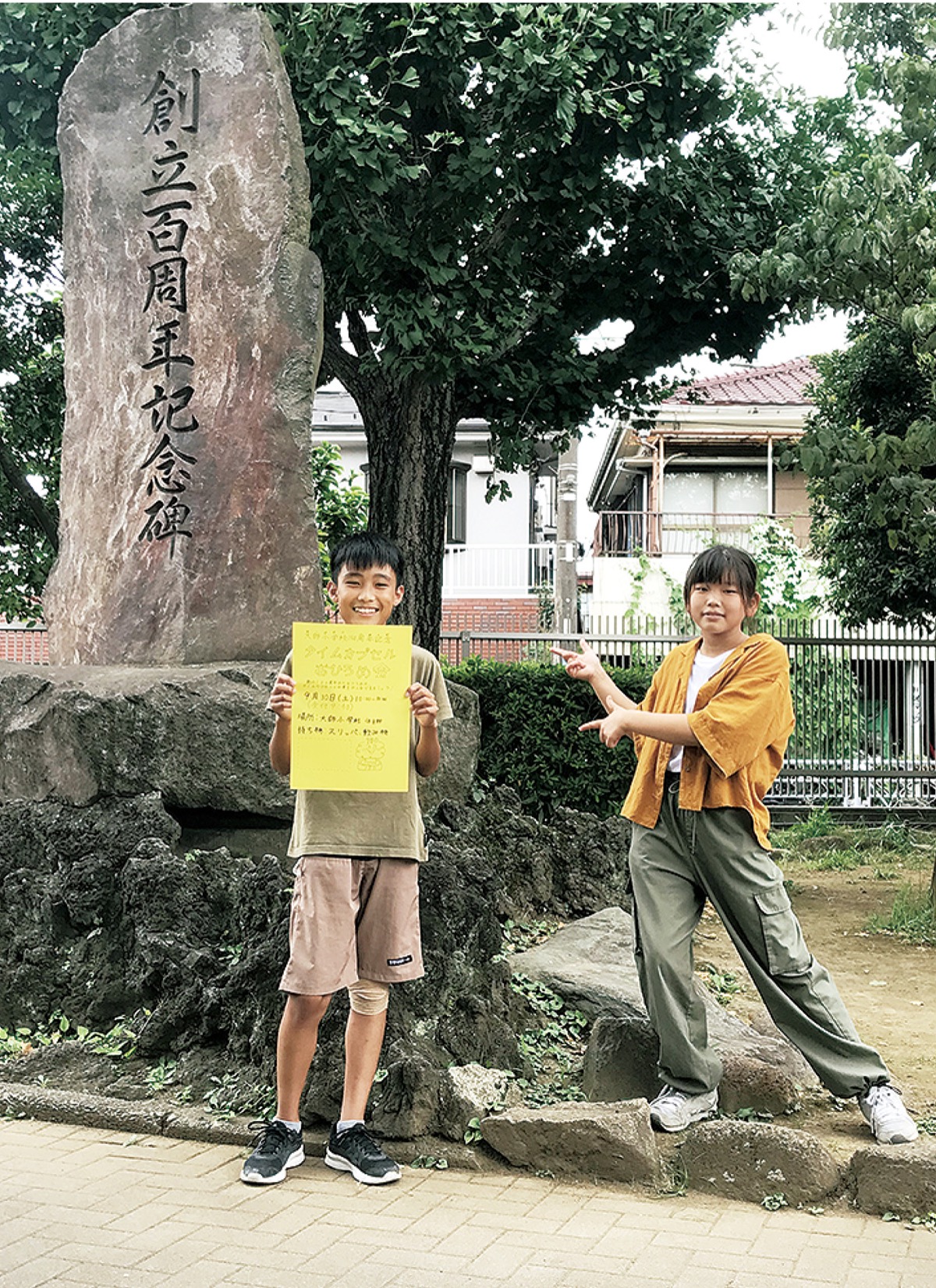 イベントを盛り上げようと、在校生もポスターを制作し学区内の町会に掲出した。6年生の井上銀河さん(12)と井上さわさん(12)は「当時の小学生が何を埋めたのか知りたい。ワクワクしている」と興味津々だ。