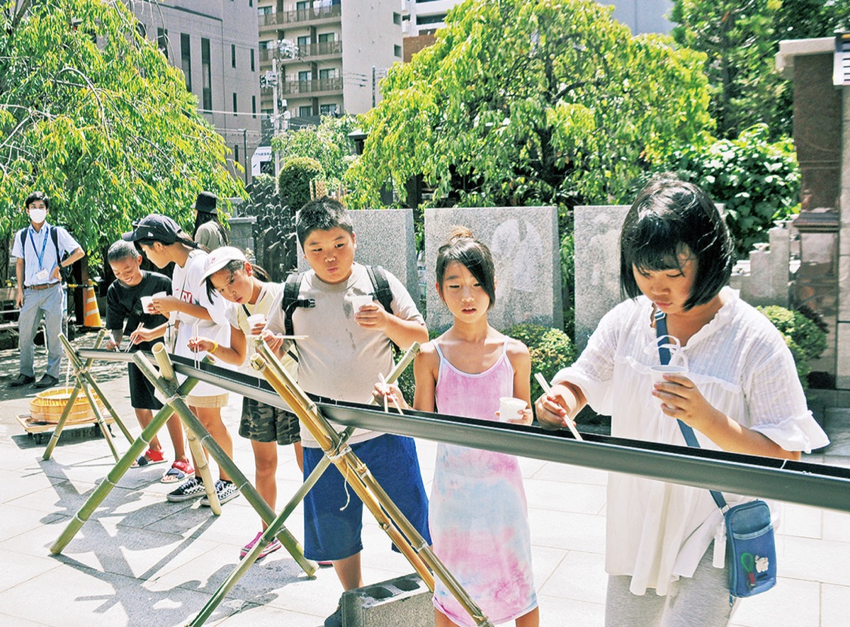 参加した高久美桜さん(8)は「流しそうめんをするのは初めてだった。流れてくるそうめんを取るのが楽しかった」と笑顔を見せた。