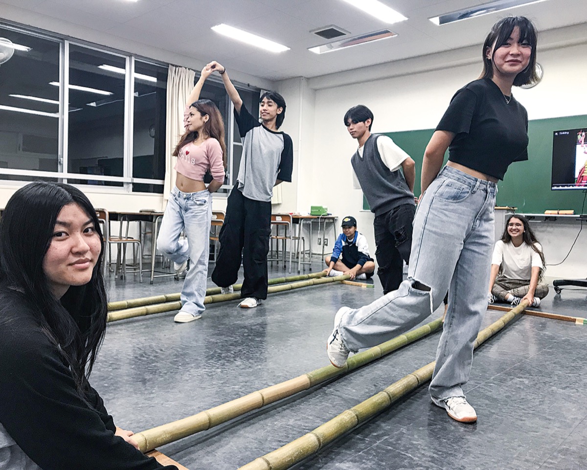 4月からはティニクリンを文化祭で披露することを部内で決め、練習を開始。ティニクリンは2本の竹の棒を寝かせ、両端に一人ずつ座った叩き手が竹を開いたり閉じたりしながら打ち合わせる。 踊り手は竹の間をステップを踏んでダンスする。西巻教諭によると当初は竹がなかったため、建築用のパイプで代用して練習したという。