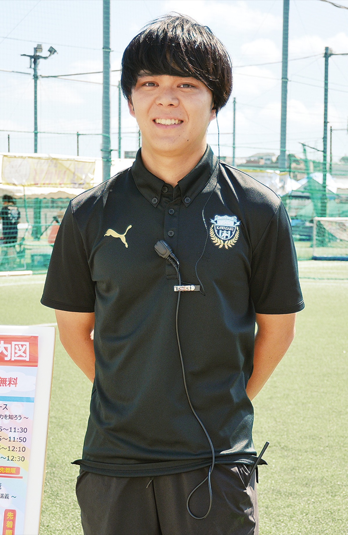 国学院大の学生時代にアルバイトを始め、社員になった。「スポーツを通した地域貢献などに魅力を感じた」と入社の決め手を話す。初めて施設に訪れる人にとっては、自分の振る舞い一つでフロンターレの印象を左右すると考える。心掛けているのは積極的なコミュニケーション。上司からの金言である「自分のファンを作れ」を常に意識している。