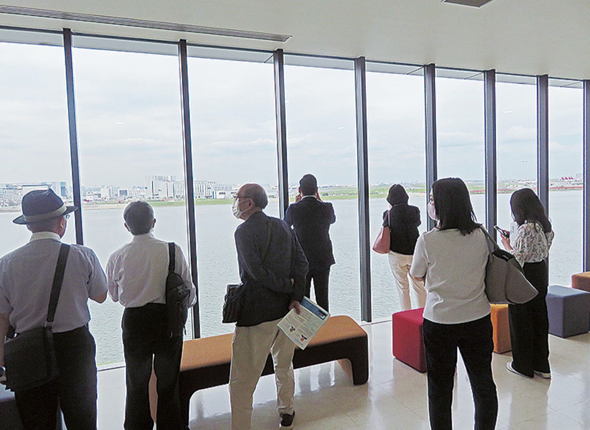 今回は川崎大師平間寺、久寿餅の製造・販売を行う住吉、東亜石油京浜製油所などを見学。ライフサイエンス・環境分野を中心にした研究所が集積する殿町のキングスカイフロントの中核施設「LiSE(ライズ)」では、ナノマシンで体内の異常箇所の芽を摘む「体内病院」の実現を目指す研究で今年のノーベル化学賞候補者として注目を集めた片岡一則氏の取り組みについて担当者から説明を受けた。昼食には多摩川スカイブリッジを渡り、空港第3ターミナル内のレストランまで足を運んだ。参加者からは「羽田と川崎がこんなに近いと思わなかった。このメリットを活用した方がいい」との声も聞かれた。阿部勝部会長は「インバウンドのヒントを共有することができた。これを次の経済活性化に役立てていきたい」と語った。