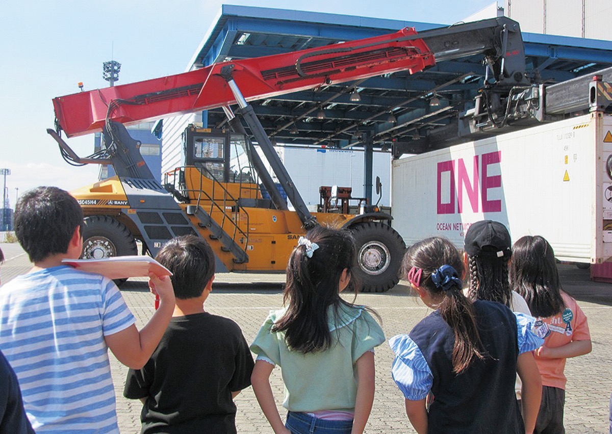 港の仕事に興味を持ってもらおうと川崎港運協会(西修一会長)は10月10日、小学生を対象に川崎港の見学会を行った。当日は麻生区の東百合丘こども文化センターの児童21人が参加。海上輸送と陸上輸送の接点となる川崎コンテナターミナルや物流施設を見学した。