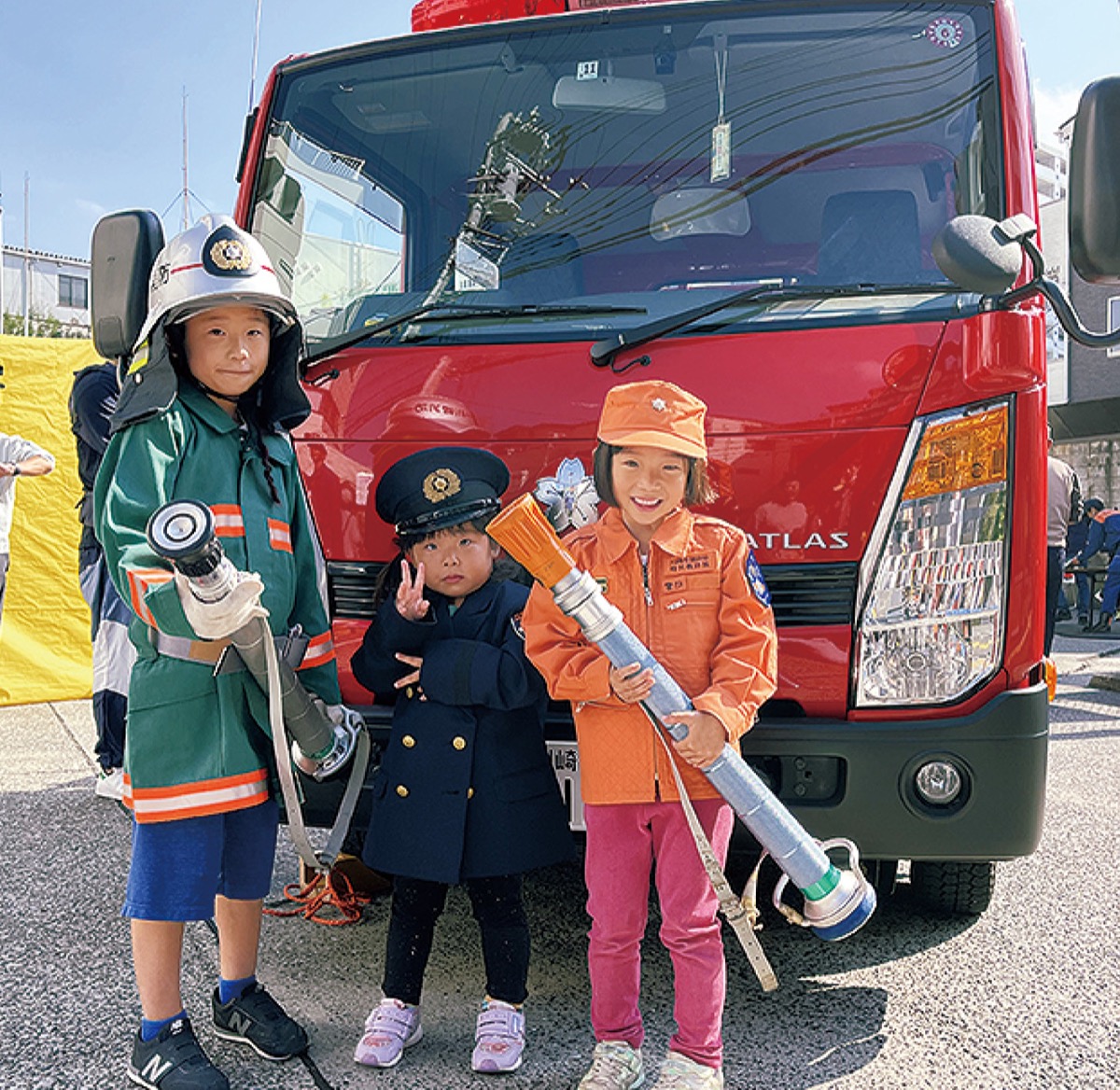 当日は川崎消防団第1分団協力のもと、消火や救命の体験を行った。ほかにも、子ども用の消防服などが用意され、着用して写真撮影を楽しんでいた。各体験をめぐるスタンプラリーも実施し、お菓子や防災ボトルが景品として配られた。