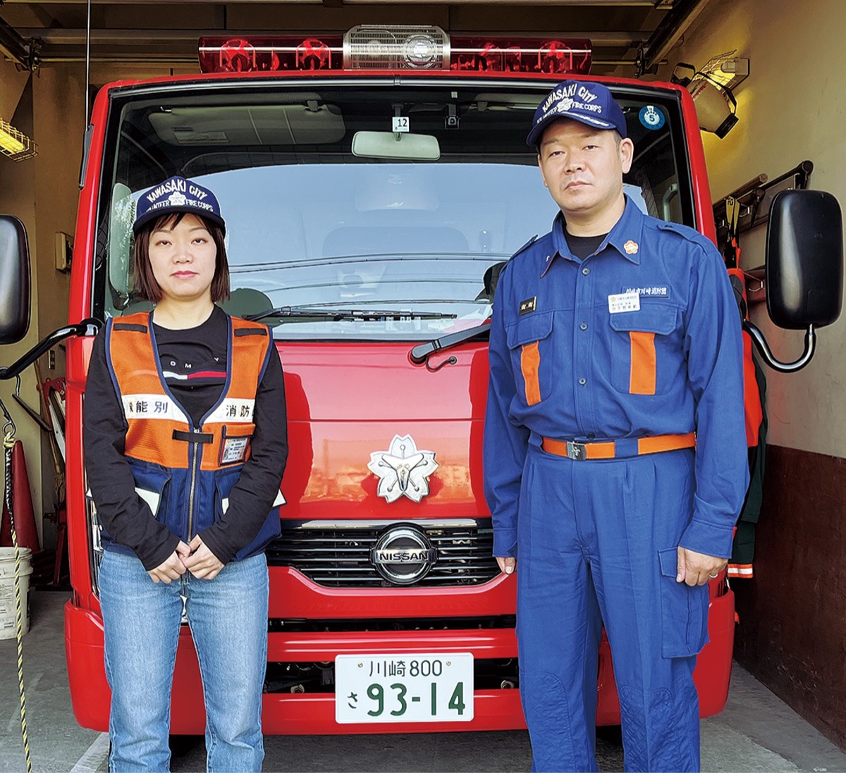 川崎区小田に住む日下部幸範さん(45)は川崎消防団第5分団、中国出身の妻・月(げっ)華(か)さん(33)さんは機能別消防団として地域活動に励んでいる。夫婦で消防団員になり初の「秋の火災予防運動」(11月9日(木)から15日(水))を迎え活動への思いを新たにした。