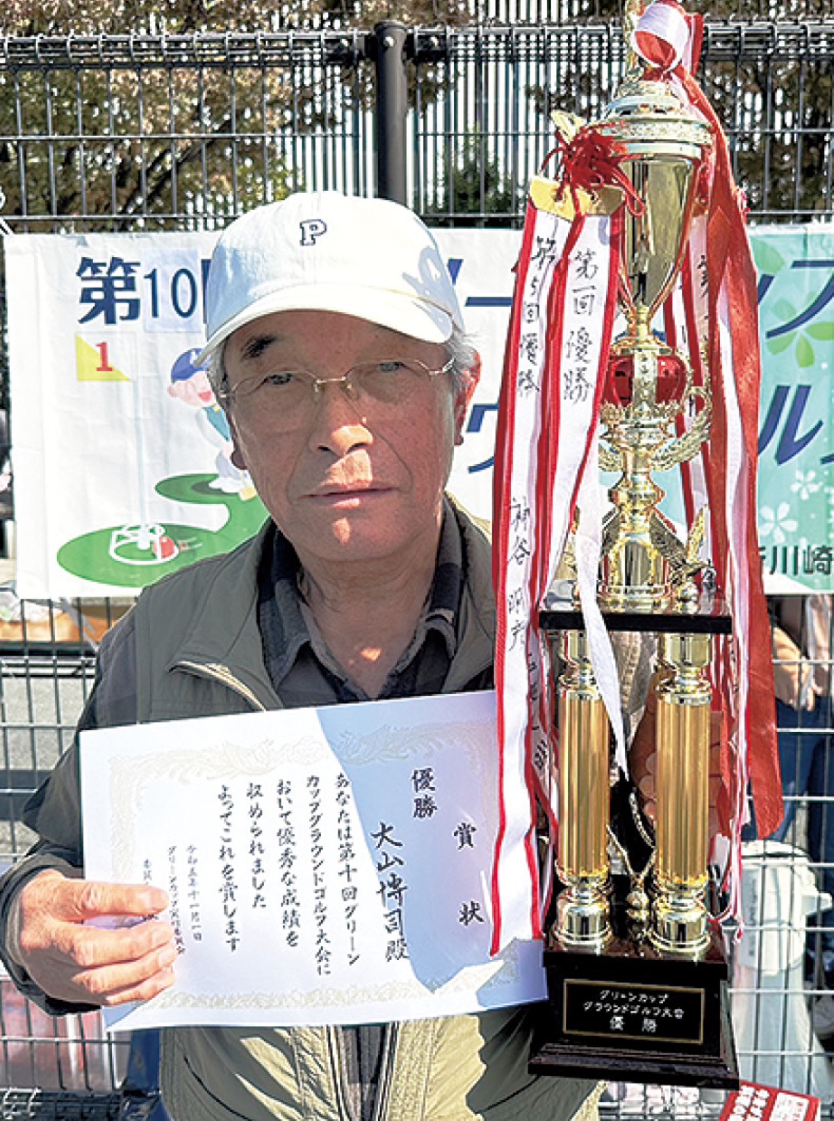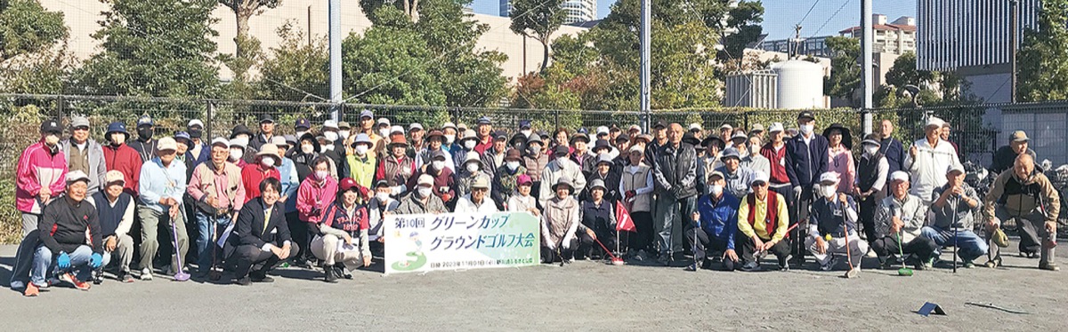 幸区内のグラウンド・ゴルフ愛好家が腕前を競う「第10回グリーンカップグラウンドゴルフ大会」が11 月2日、さいわいふるさと公園(幸区新川崎)で開かれ、はつらつとした笑顔でプレーを楽しんだ。67歳から89歳までの約100人が参加し、計16ホールで競った。優勝したのは大山博司さん(74)、ホールインワン賞をはじめ、様々な賞も贈られた。