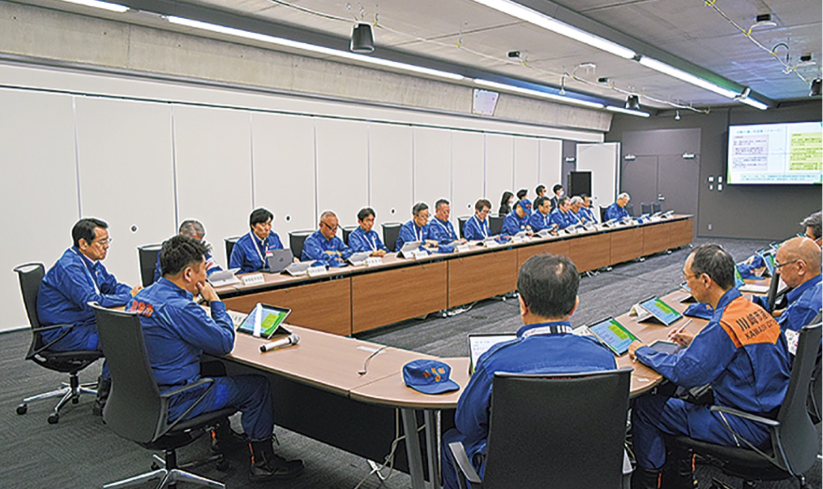 新しい本庁舎は、「防災・危機管理」をコンセプトに建て替えられた。水害の被害を受けないよう、3階と4階の間に免震層を設け、機械室は4階以上に配置。屋上には、緊急避難を想定した緊急離着陸場を設置し、執務室は落下による二次被害を防ぐため無天井とした。市長直轄の危機管理本部では、開庁前に参集訓練を実施した。