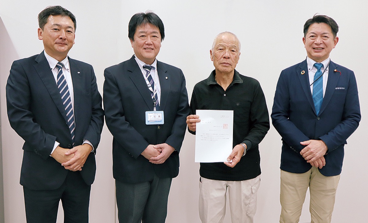 川崎市役所で行われた贈呈式で久保田会長が石渡一城健康福祉局局長に現金を手渡した。返礼として石渡局長は感謝状を贈った。寄付金は長寿社会福祉振興基金に充てられる。